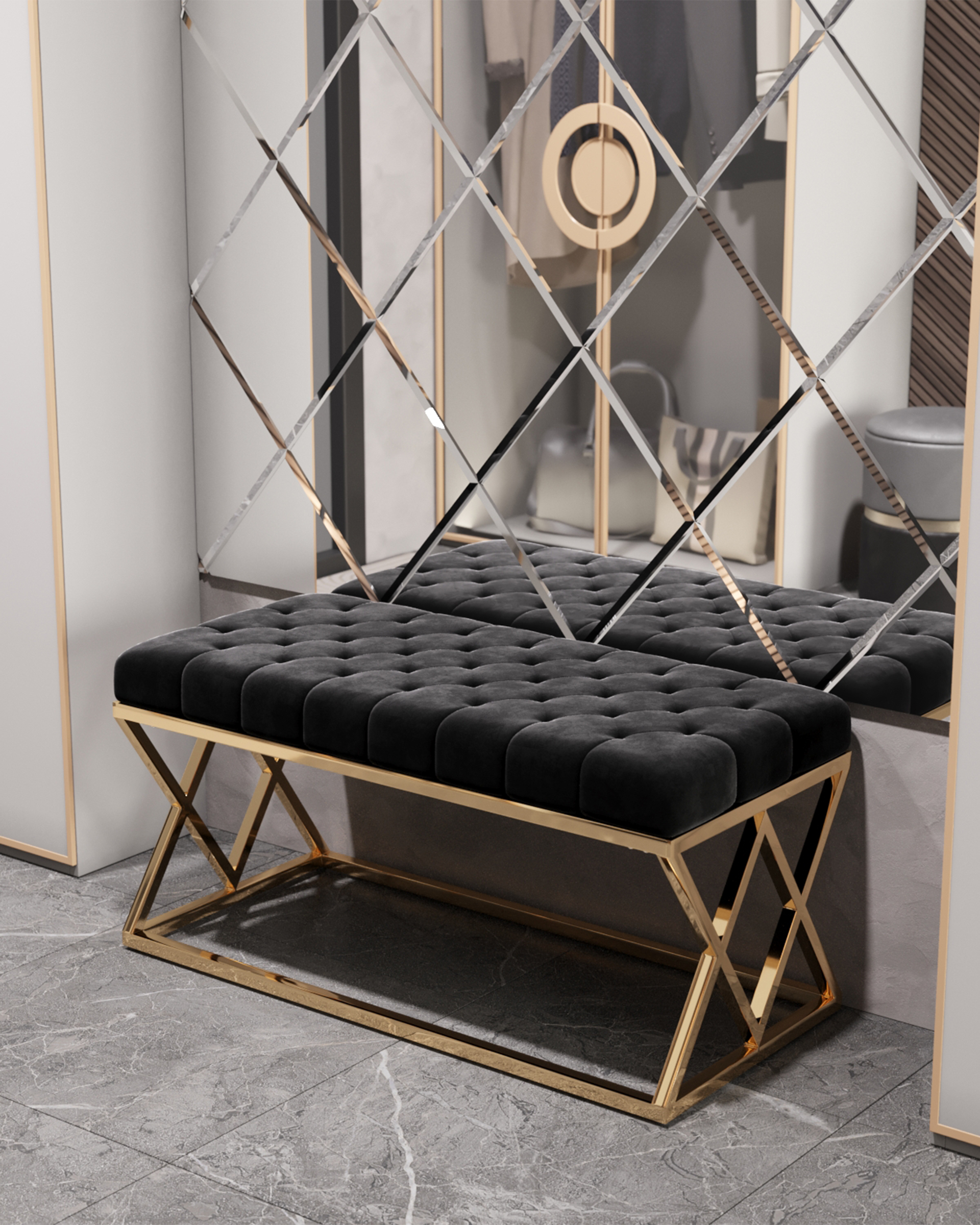 Банкетка Stool Group ИНСИГНИЯ нержавеющая сталь, сиденье черный велюр, каркас сталь
