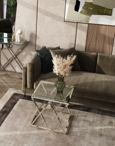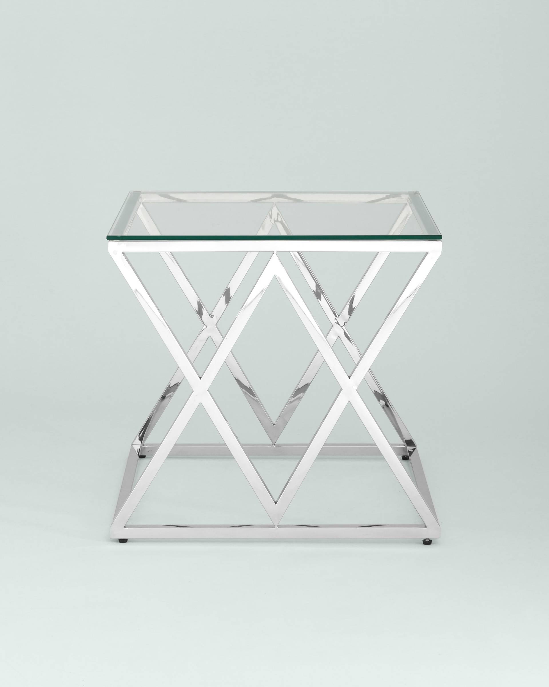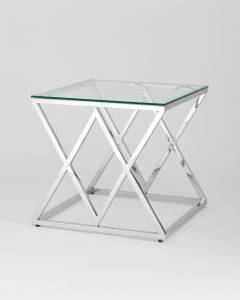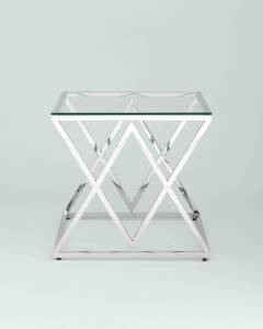 Стол Stool Group журнальный 55*55 ИНСИГНИЯ серебро, каркас нержавеющая сталь, столешница закаленное стекло