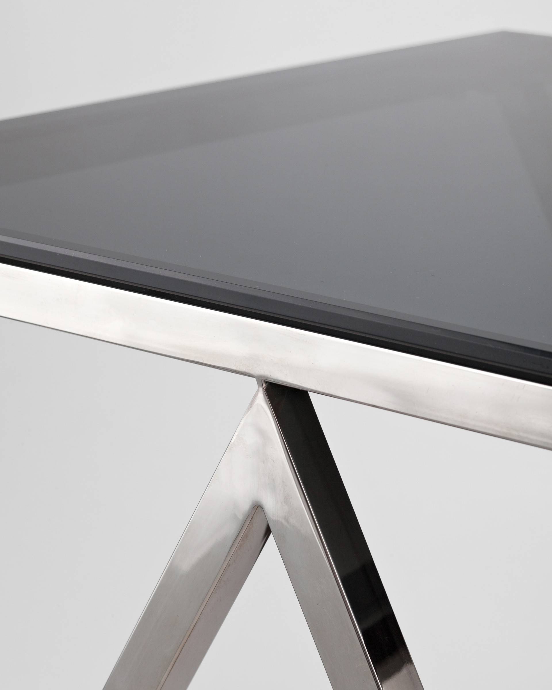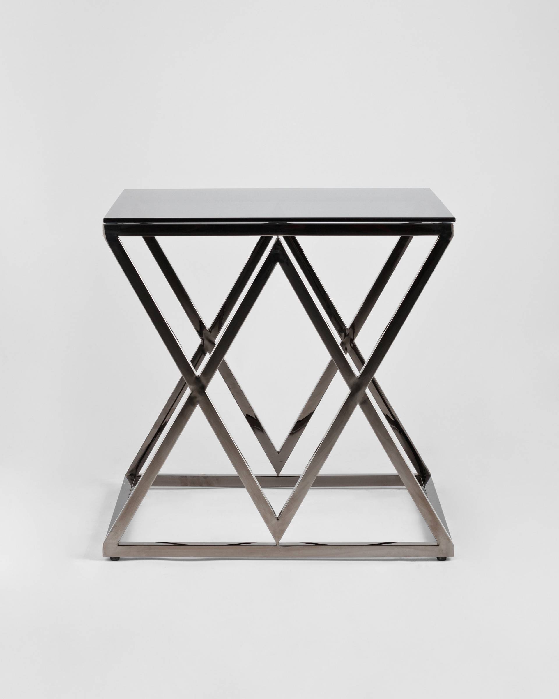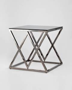 Стол журнальный ИНСИГНИЯ 55*55 нержавеющая сталь темный хром стекло smoke