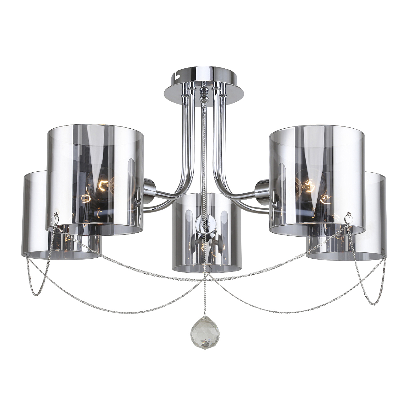 Потолочный светильник 5х40Вт E14, металл/стекло, хром/дымчатый плафон