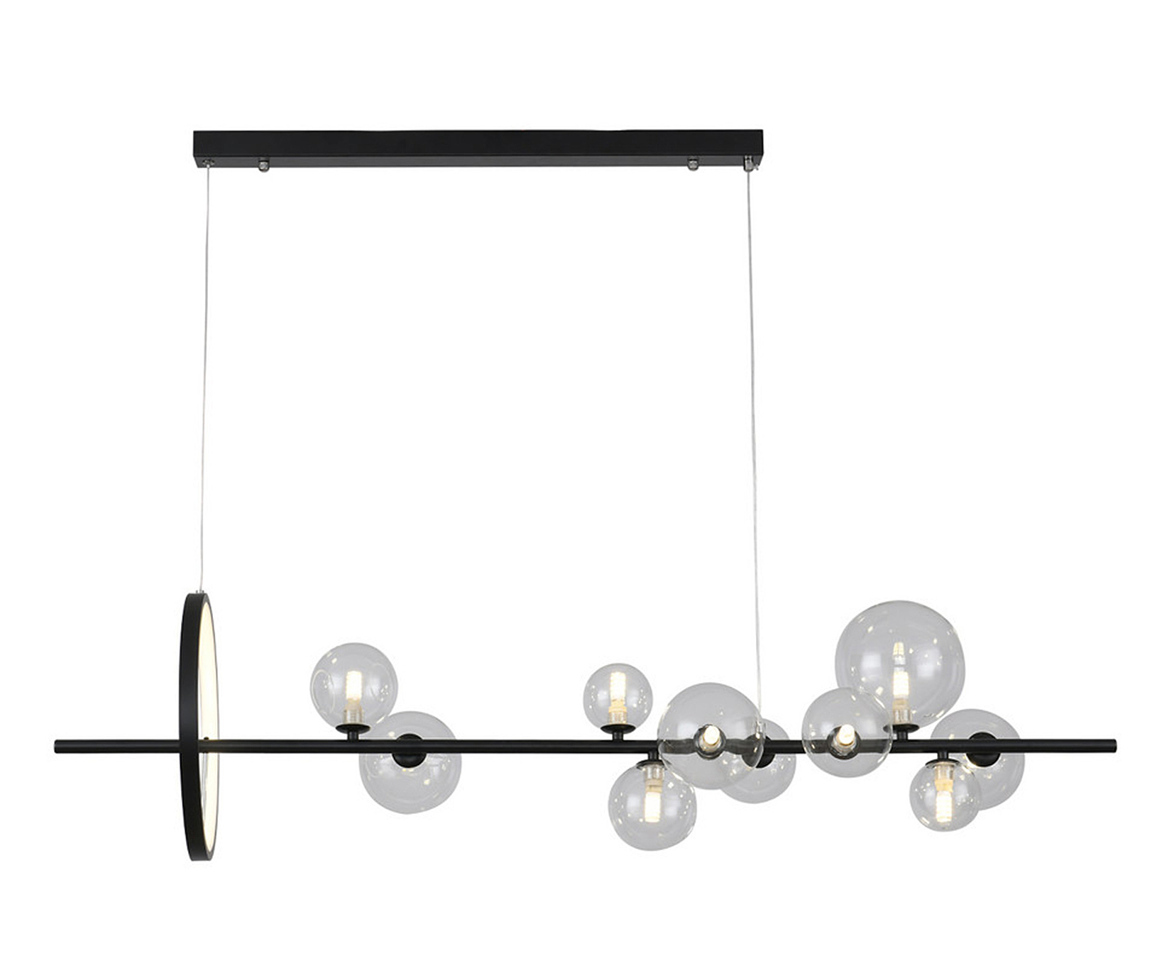 Допускается отличие страны-изготовителя, указанной в характеристиках. Линии производства могут находиться в нескольких государствах. Это не влияет на качество изготовления товара: все заводы данного бренда работают по общим стандартам, а готовые изделия проходят соответствующий контроль.Китай Коллекция Иона ЦветЦвет арматуры Черный Цвет Черный Материал арматуры Металл Цвет плафона прозрачный Материал плафона Стекло РазмерыВысота (мм) 2000 Длина (мм) 1200 Ширина (мм) 280 ЭлектрикаКоличество ламп (шт) 11 Цоколь G9 Тип лампы Светодиодная Мощность лампы (Вт) 6 Общая мощность (Вт) 69 Световой поток 4620 Площадь освещения 12 Дополнительная информацияСтепень защиты (IP) IP20 Тип подвеса На тросах -