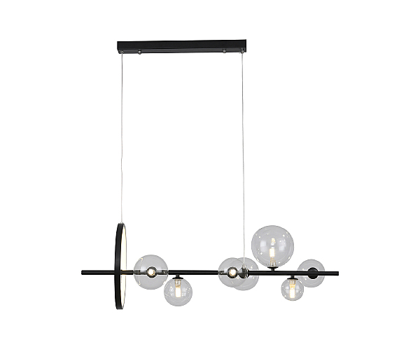 Допускается отличие страны-изготовителя, указанной в характеристиках. Линии производства могут находиться в нескольких государствах. Это не влияет на качество изготовления товара: все заводы данного бренда работают по общим стандартам, а готовые изделия проходят соответствующий контроль.Китай Коллекция Иона ЦветЦвет арматуры Черный Цвет Черный Материал арматуры Металл, Стекло Цвет плафона прозрачный РазмерыВысота (мм) 1200 Длина (мм) 850 Ширина (мм) 270 ЭлектрикаКоличество ламп (шт) 8 Цоколь LED, G9 Лампочки в комплекте Лампы в комплекте Мощность лампы (Вт) 6 Общая мощность (Вт) 48 Световой поток 4800 Цветовая температура 4000 Дополнительная информацияСтепень защиты (IP) IP20 Тип подвеса На тросах -