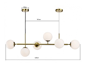 Допускается отличие страны-изготовителя, указанной в характеристиках. Линии производства могут находиться в нескольких государствах. Это не влияет на качество изготовления товара: все заводы данного бренда работают по общим стандартам, а готовые изделия проходят соответствующий контроль.Китай Коллекция Ирда ЦветЦвет арматуры Бронза Цвет Бронза Материал арматуры Металл Цвет плафона Белый Материал плафона Стекло РазмерыВысота (мм) 1400 Длина (мм) 1200 Ширина (мм) 350 ЭлектрикаКоличество ламп (шт) 6 Цоколь E27 Тип лампы Накаливания Мощность лампы (Вт) 40 Общая мощность (Вт) 240 Световой поток 2160 Дополнительная информацияСтепень защиты (IP) IP20 Тип подвеса На тросах Количество подвесов Одиночный подвес -