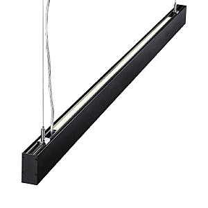 Линейные подвесные светодиодные светильники ITER. Удобное решение - купил и установил. Модельный ряд представлен: в двух размерах (Д)903 мм и (Д)1203мм, в двух классических цветах чёрном и белом. Способ установки только подвесной (подвесы в комплекте), потому что светильник светит вверх (12Вт) и вниз (40Вт). Драйвер электропитания размещается внутри светильника.