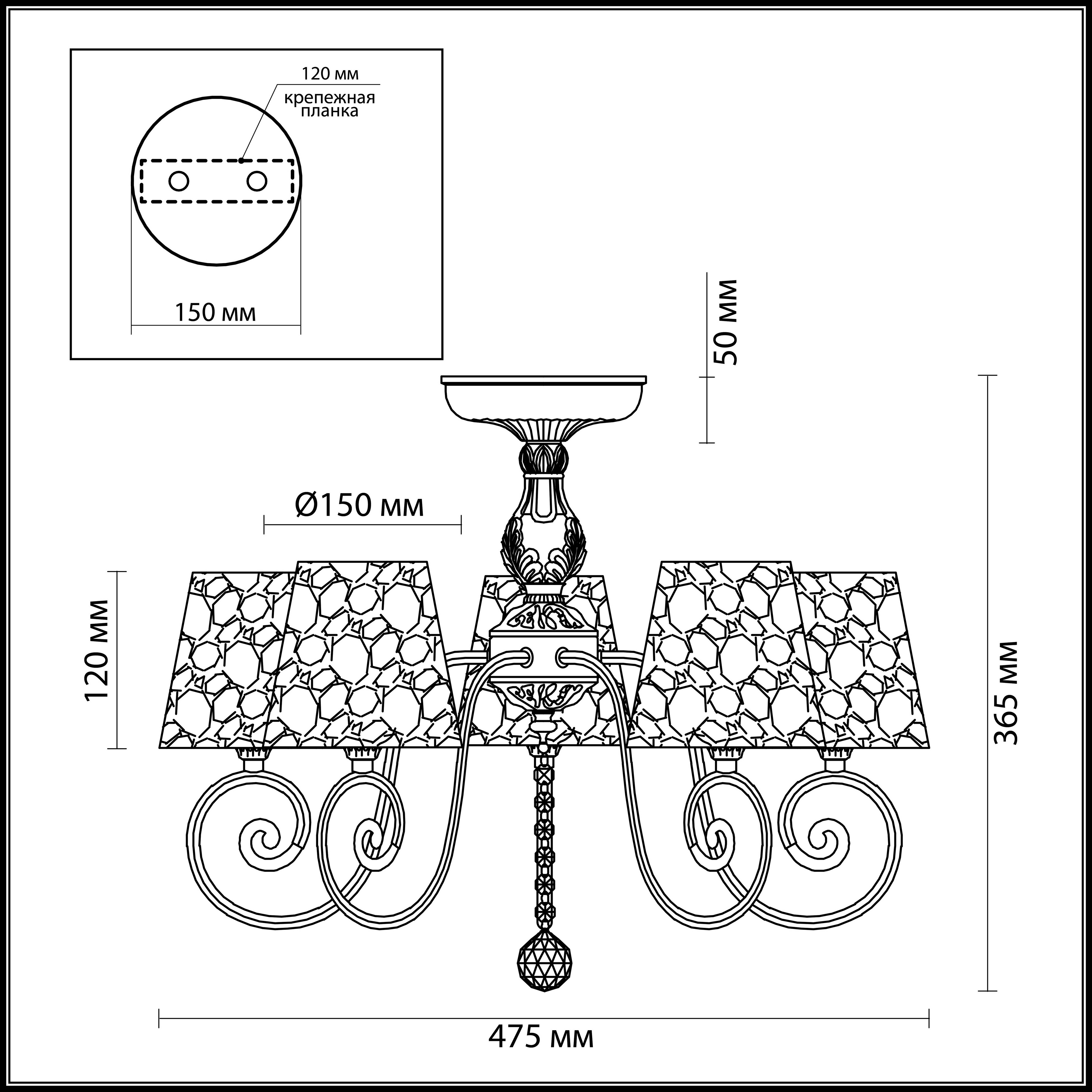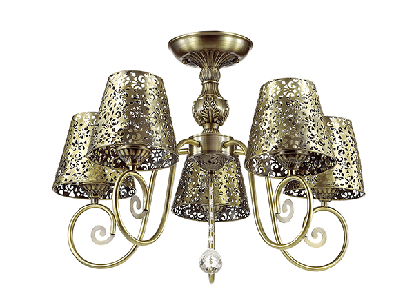 Допускается отличие страны-изготовителя, указанной в характеристиках. Линии производства могут находиться в нескольких государствах. Это не влияет на качество изготовления товара: все заводы данного бренда работают по общим стандартам, а готовые изделия проходят соответствующий контроль.Италия Коллекция Izidora ЦветЦвет арматуры бронзовый Цвет Бронза Материал арматуры Металл Материал декора Хрусталь РазмерыВысота (мм) 430 Длина (мм) 590 Ширина (мм) 590 ЭлектрикаКоличество ламп (шт) 5 Цоколь E14 Мощность лампы (Вт) 60W Напряжение (В) 220 -