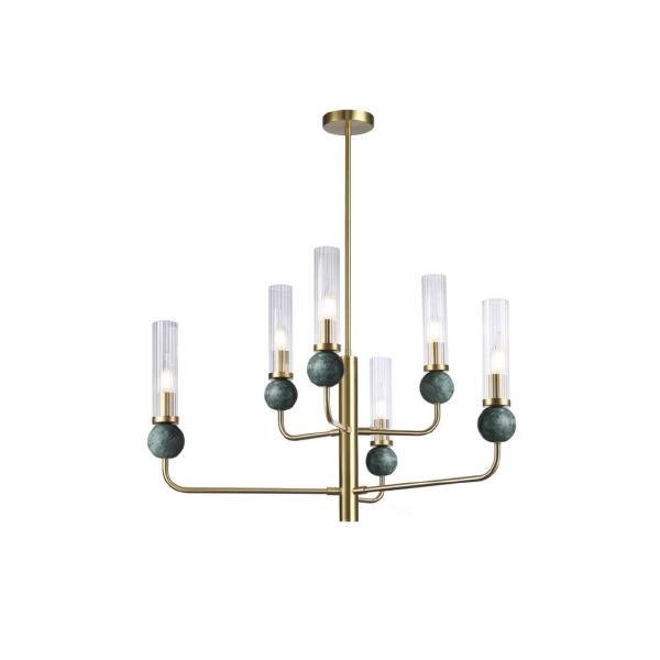 Допускается отличие страны-изготовителя, указанной в характеристиках. Линии производства могут находиться в нескольких государствах. Это не влияет на качество изготовления товара: все заводы данного бренда работают по общим стандартам, а готовые изделия проходят соответствующий контроль.Польша Коллекция Izidora ЦветЦвет арматуры Латунь Цвет Латунь Материал арматуры Металл Цвет декора зеленый мрамор Цвет плафона прозрачный Материал декора иск. камень Материал плафона Стекло РазмерыВысота (мм) 1000 Диаметр (мм) 800 Высота минимальная (мм) 400 Ширина (мм) 800 ЭлектрикаКоличество ламп (шт) 6 Цоколь Е14 Лампочки в комплекте Нет в комплекте Мощность лампы (Вт) 40 Общая мощность (Вт) 240 Световой поток 2520 Дополнительная информацияСпособ крепления Планка Вес (Кг) 6 -