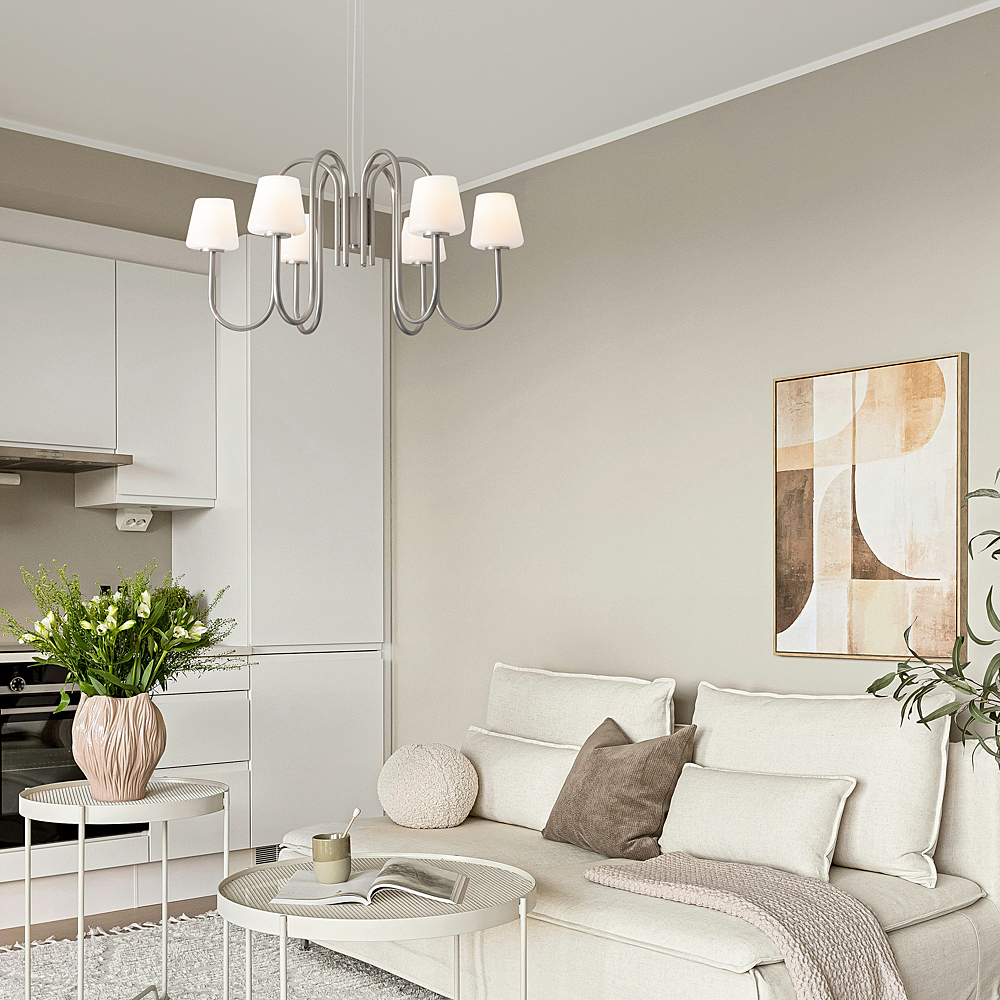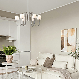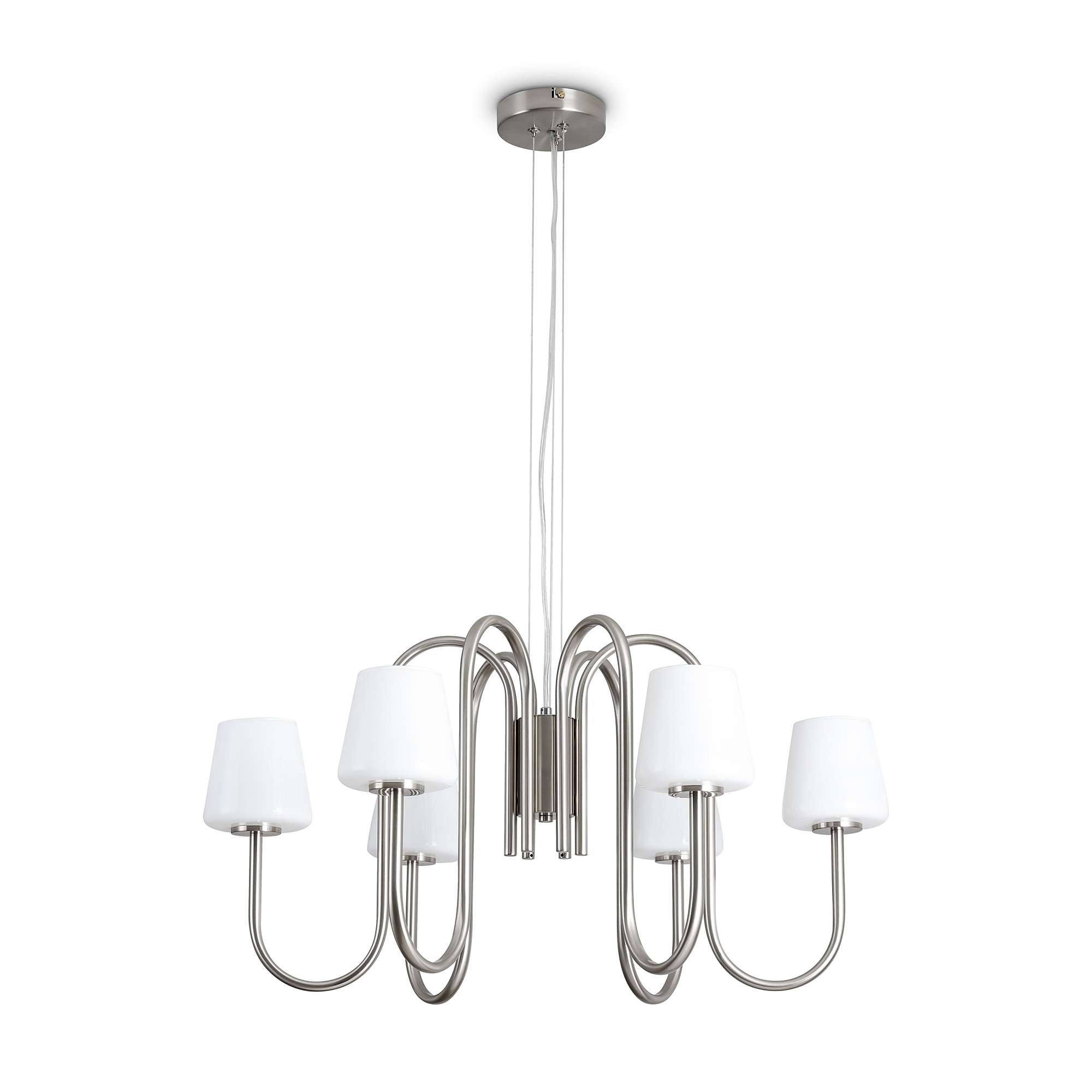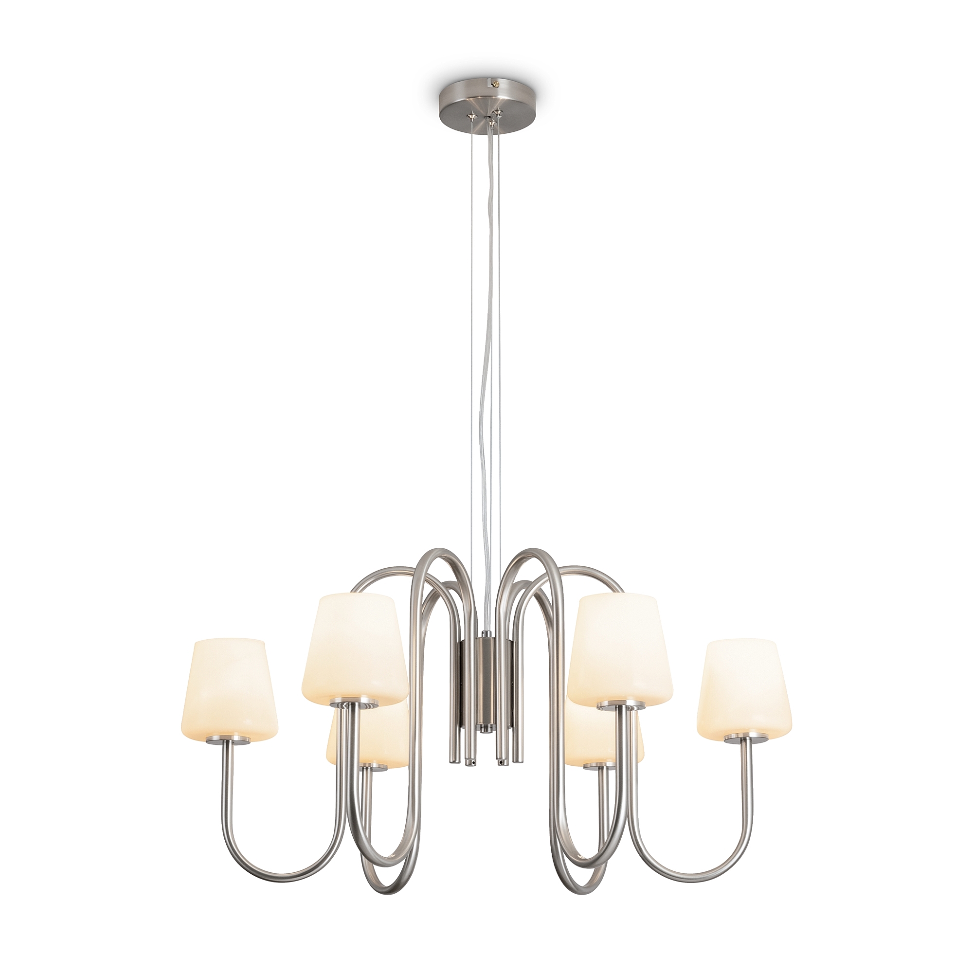 Допускается отличие страны-изготовителя, указанной в характеристиках. Линии производства могут находиться в нескольких государствах. Это не влияет на качество изготовления товара: все заводы данного бренда работают по общим стандартам, а готовые изделия проходят соответствующий контроль.Германия Коллекция Jade ЦветЦвет арматуры Никель Цвет Никель Материал арматуры Металл Цвет плафона Матовый белый Материал плафона Стекло РазмерыВысота (мм) 2000 Диаметр (мм) 720 Высота минимальная (мм) 500 Ширина (мм) 720 Диаметр абажура-плафона 80 Высота абажура-плафона 115 Диаметр основания 120 ЭлектрикаКоличество ламп (шт) 6 Цоколь E14 Лампочки в комплекте Нет в комплекте Мощность лампы (Вт) 40 Напряжение (В) 220 Дополнительная информацияСтепень защиты (IP) IP20 Вес (Кг) 3,2 Тип подвеса На тросах -