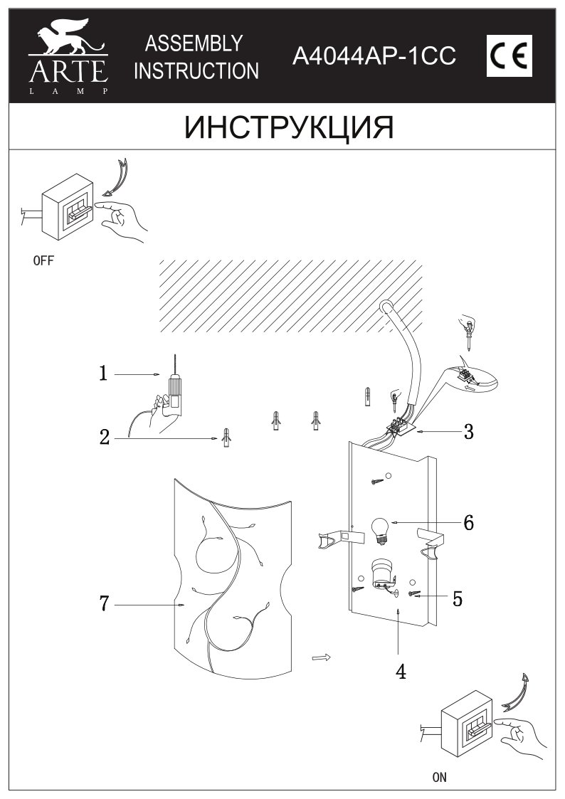 Производитель Arte Lamp Артикул A4044AP-1CC Страна