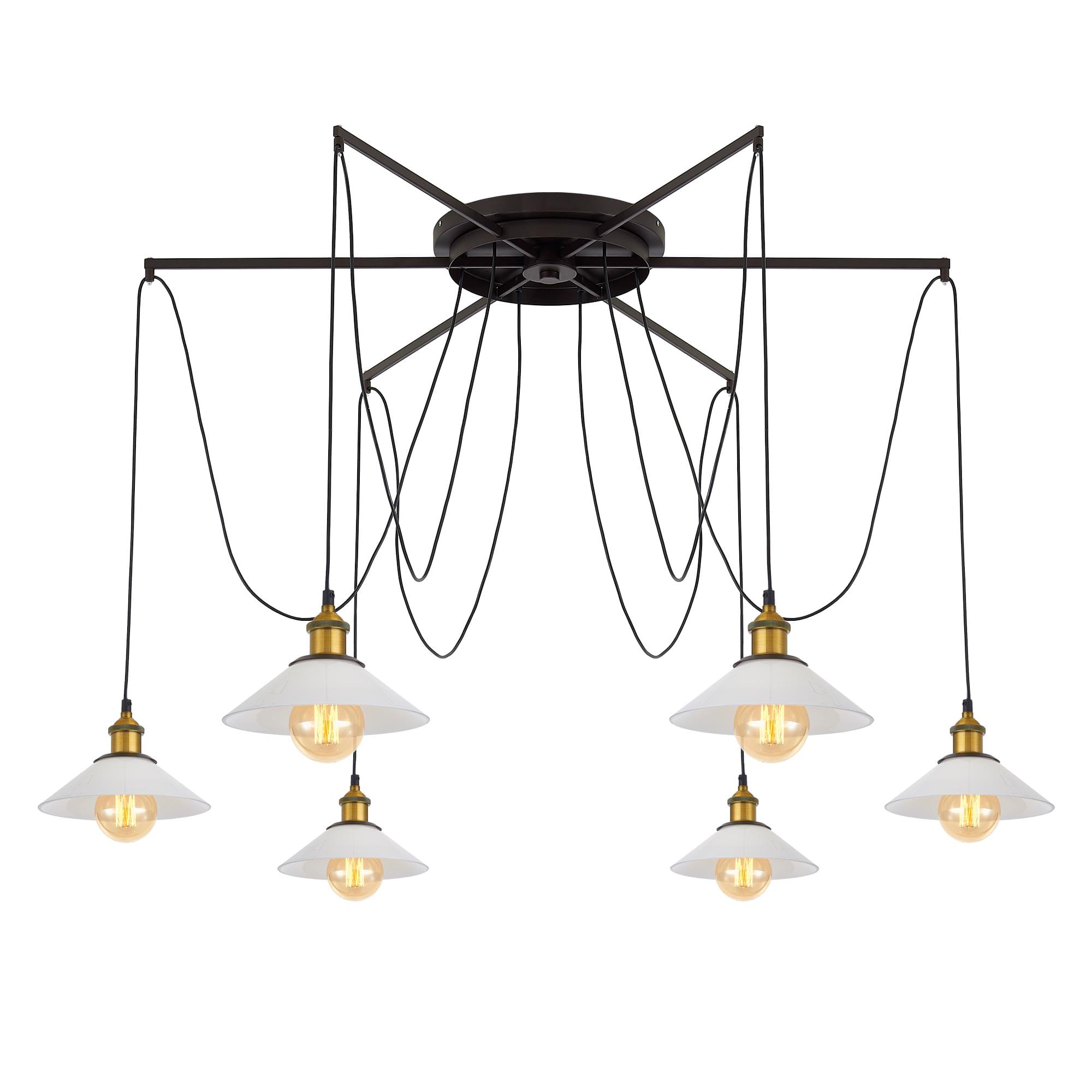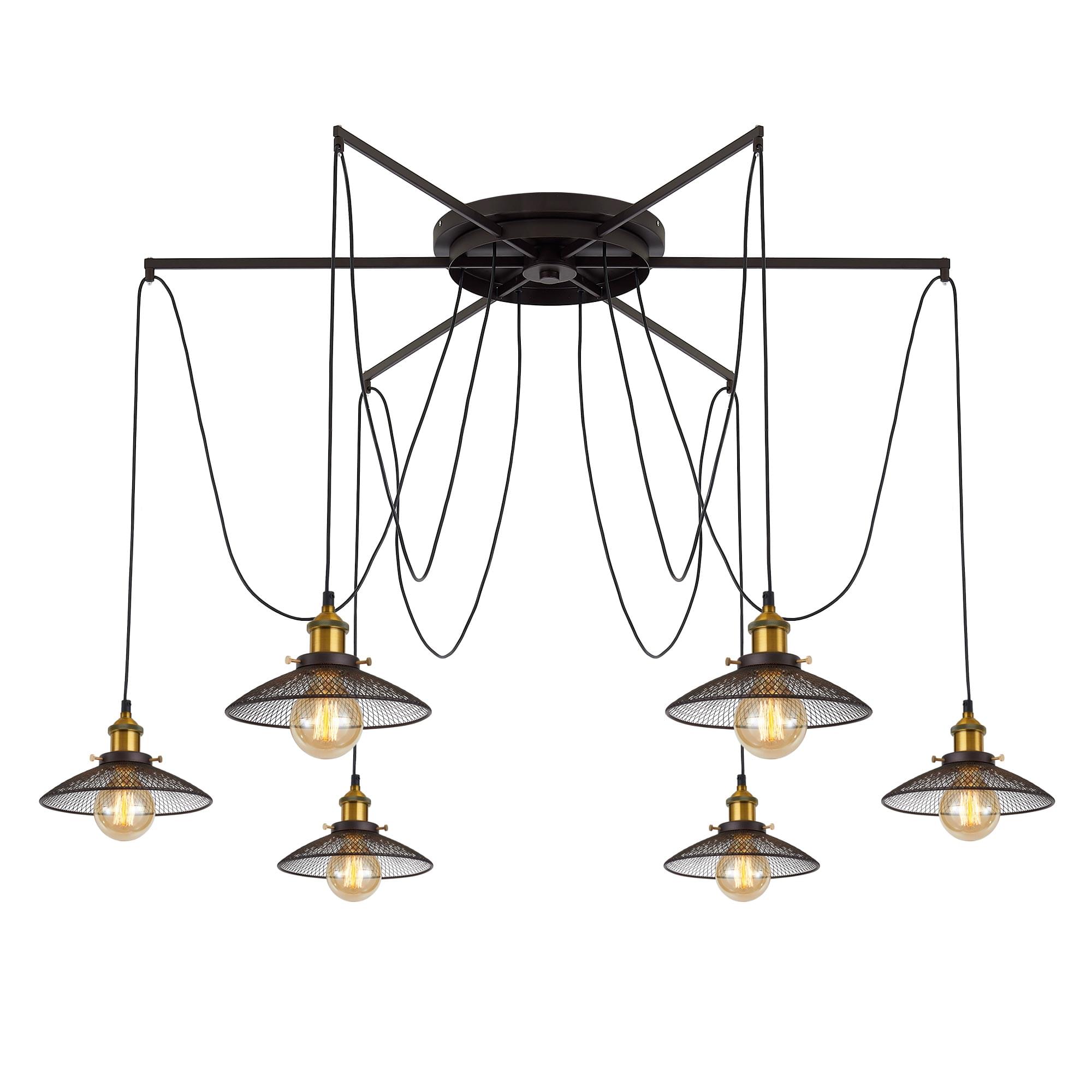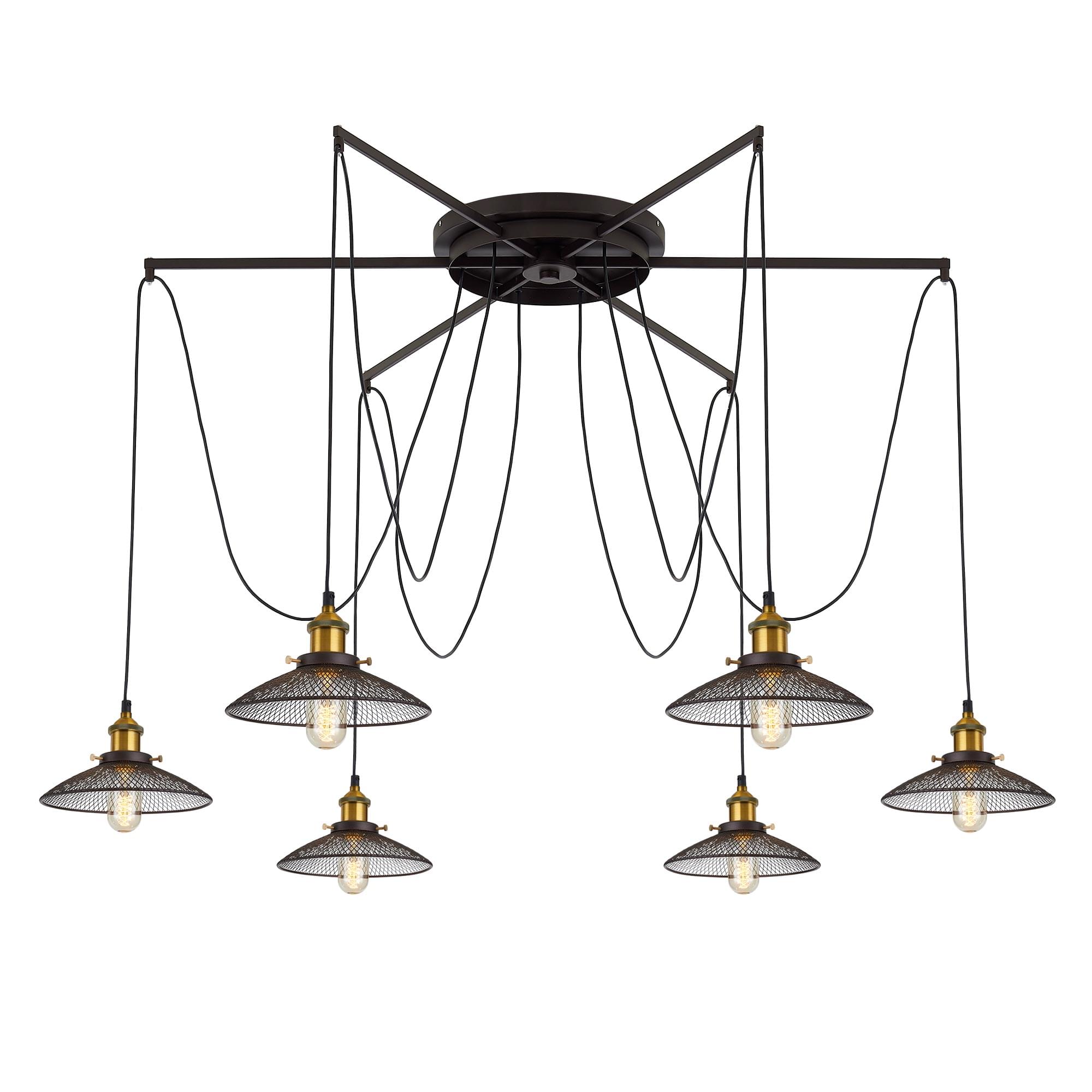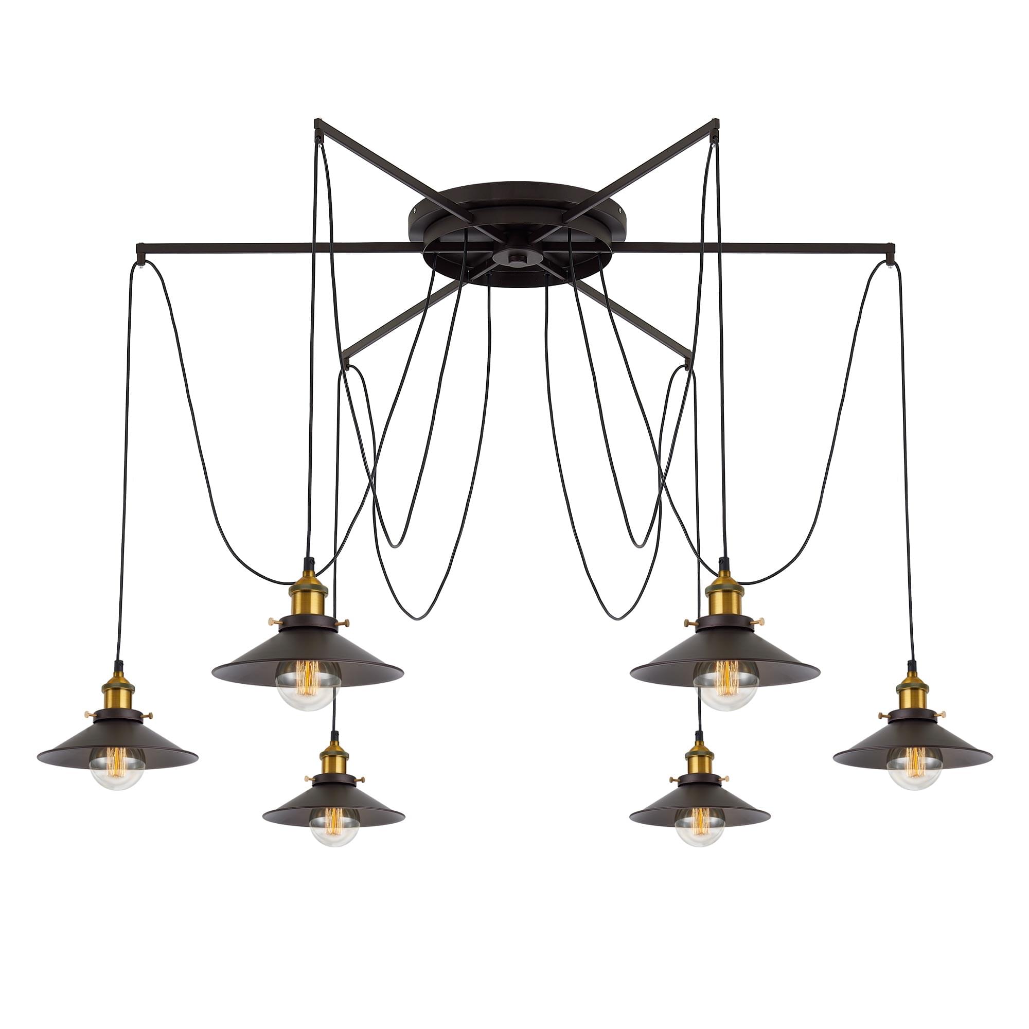 Люстра c креплением к потолку в одной точке, Диаметр 120см, Длина провода 205см. Точеный стакан патрона, цвет - старая бронза.