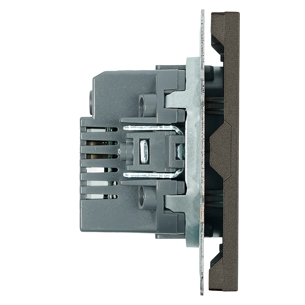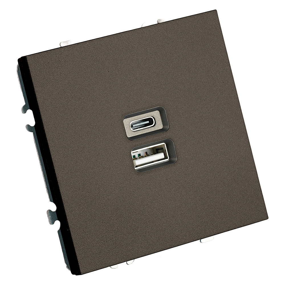 Розетка STEKKER RST10-5115-09 (USB-A: 12В 1,5А/9В 2А/5В 3А USB-C: 12В 1,67А/9В 2.22А/5В 3А, срок службы 25 лет) на USB Type A + Type C гнездо, -, -. Материал: поликарбонат, латунь, сталь, цвет антрацит, soft touch, размер 71*71*41мм. Номинальное напряжение 250, номинальный ток 3A, диапазон рабочих температур 0..+35?C, 20