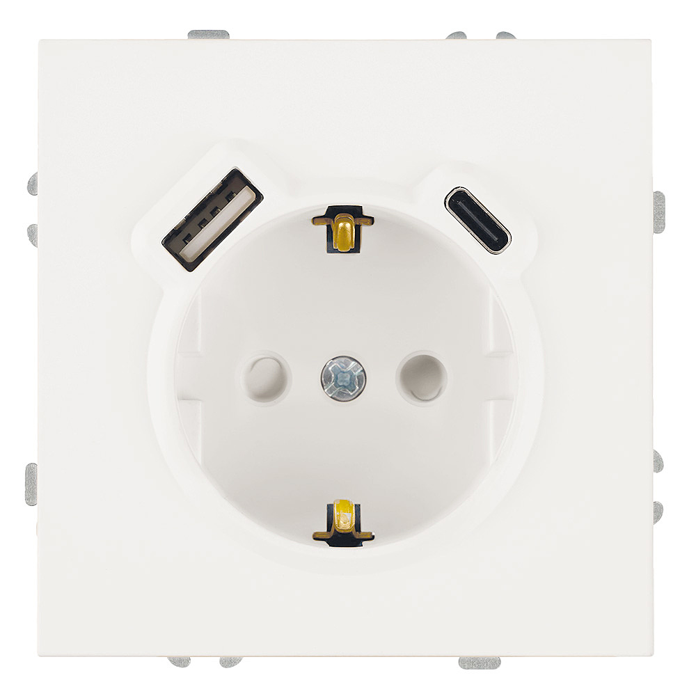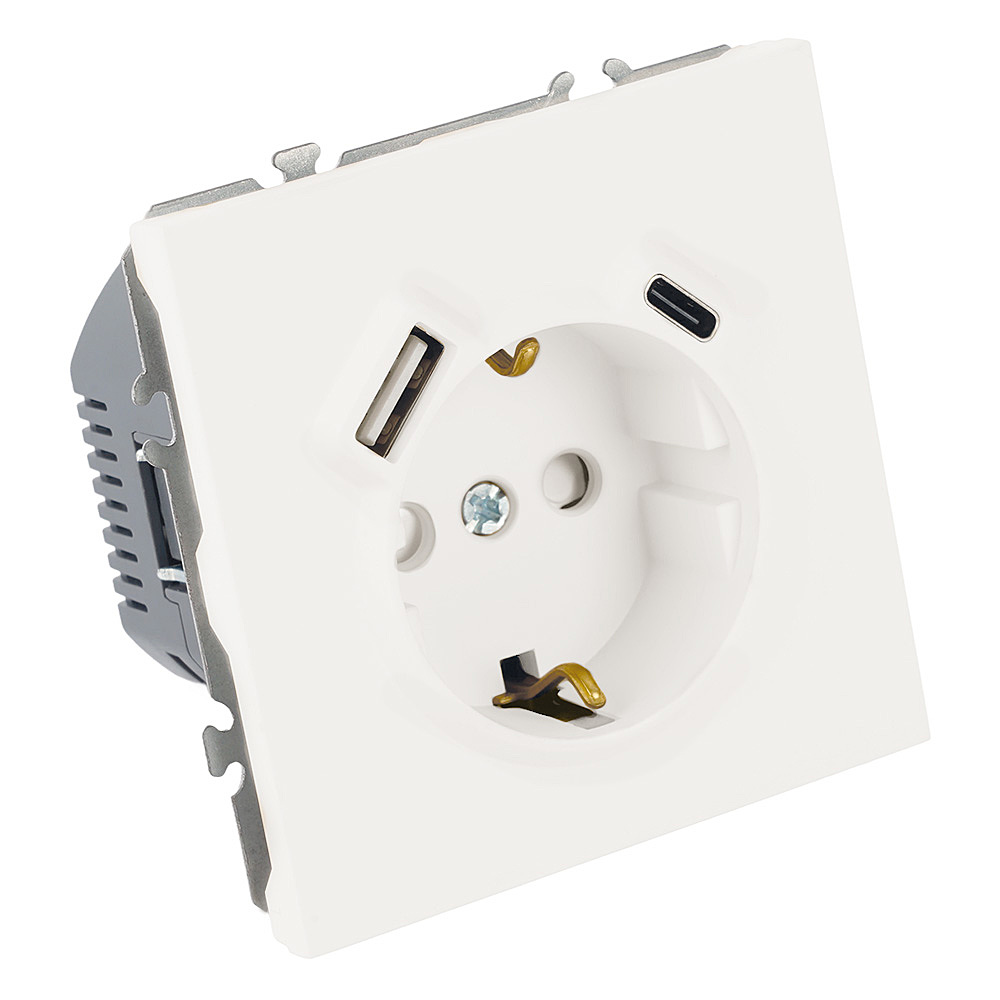 Розетка STEKKER RST16-5119-01 (USB-A:5V~3A,9V~2A,12V~1.5A?Type-C:5V~3A,9V~2.22A,12V~1.67A?USB-A+Type-C:5V~3A, срок службы 25 лет) на 1+USB+Type C гнездо, -, с заземлением. Материал: поликарбонат, бронза, латунь, сталь, цвет белый фарфор, soft touch, размер 71*71*54мм. Номинальное напряжение 250, номинальный ток 16А, диапазон рабочих температур 0..+35?C, 20