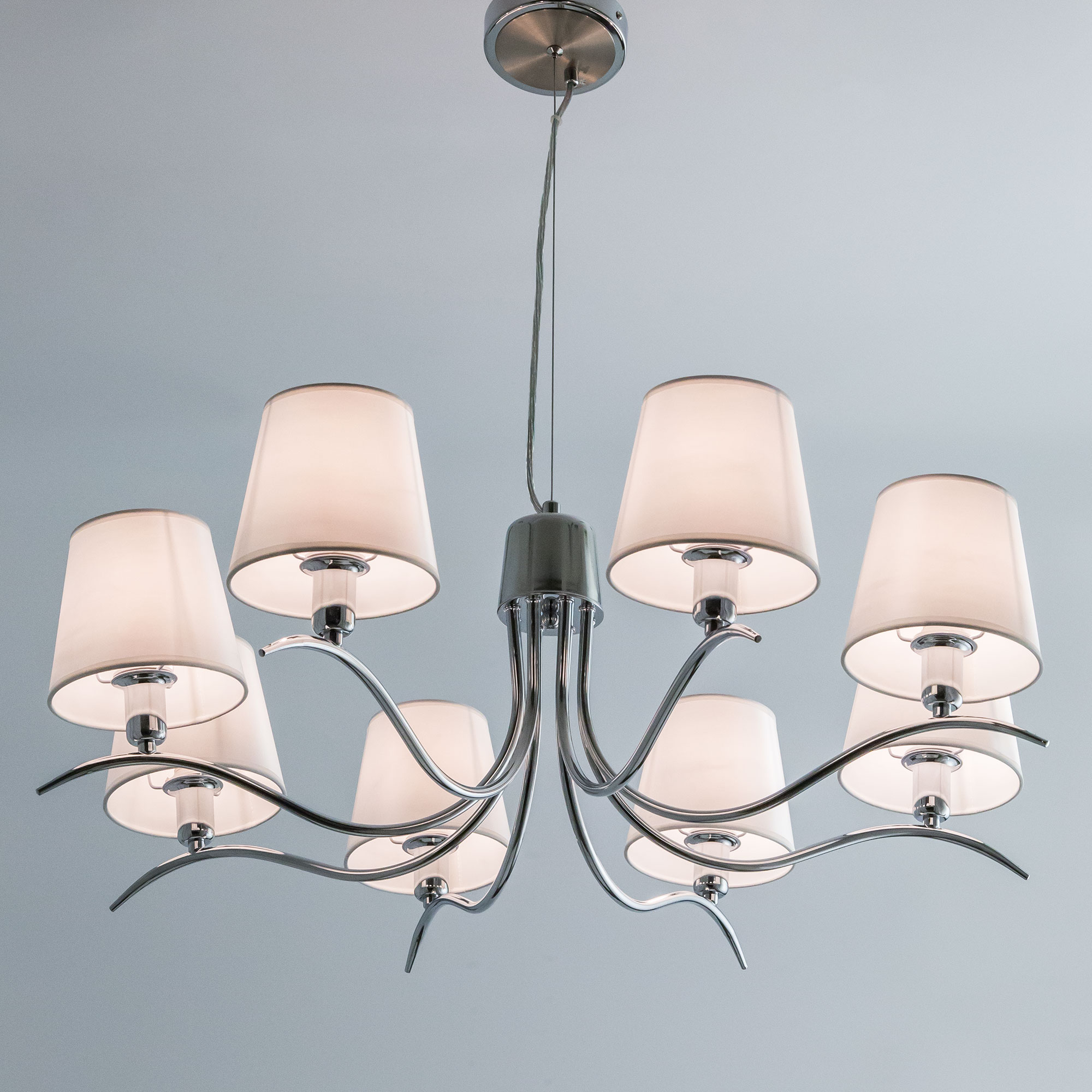 Допускается отличие страны-изготовителя, указанной в характеристиках. Линии производства могут находиться в нескольких государствах. Это не влияет на качество изготовления товара: все заводы данного бренда работают по общим стандартам, а готовые изделия проходят соответствующий контроль.Дания Коллекция Эмма ЦветЦвет арматуры Хром Цвет Хром Материал арматуры Металл Цвет плафона Белый Материал плафона Текстиль РазмерыВысота (мм) 1300 Диаметр (мм) 800 Высота минимальная (мм) 350 Ширина (мм) 800 ЭлектрикаКоличество ламп (шт) 8 Цоколь E14 Тип лампы Светодиодная, Накаливания, Энергосберегающая (КЛЛ) Мощность лампы (Вт) 60 Общая мощность (Вт) 480 Напряжение (В) 220 Площадь освещения 14-20 Дополнительная информацияСпособ крепления Планка Степень защиты (IP) IP20 Вес (Кг) 3.100 Тип подвеса На тросах -