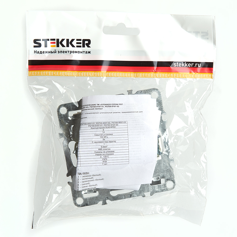 Розетка компьютерная 1-местная RJ-45 (механизм), STEKKER PST00-9107-03, серия Эрна, черный