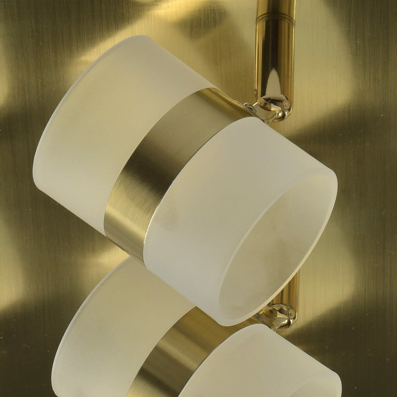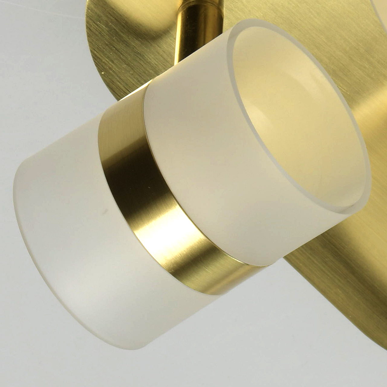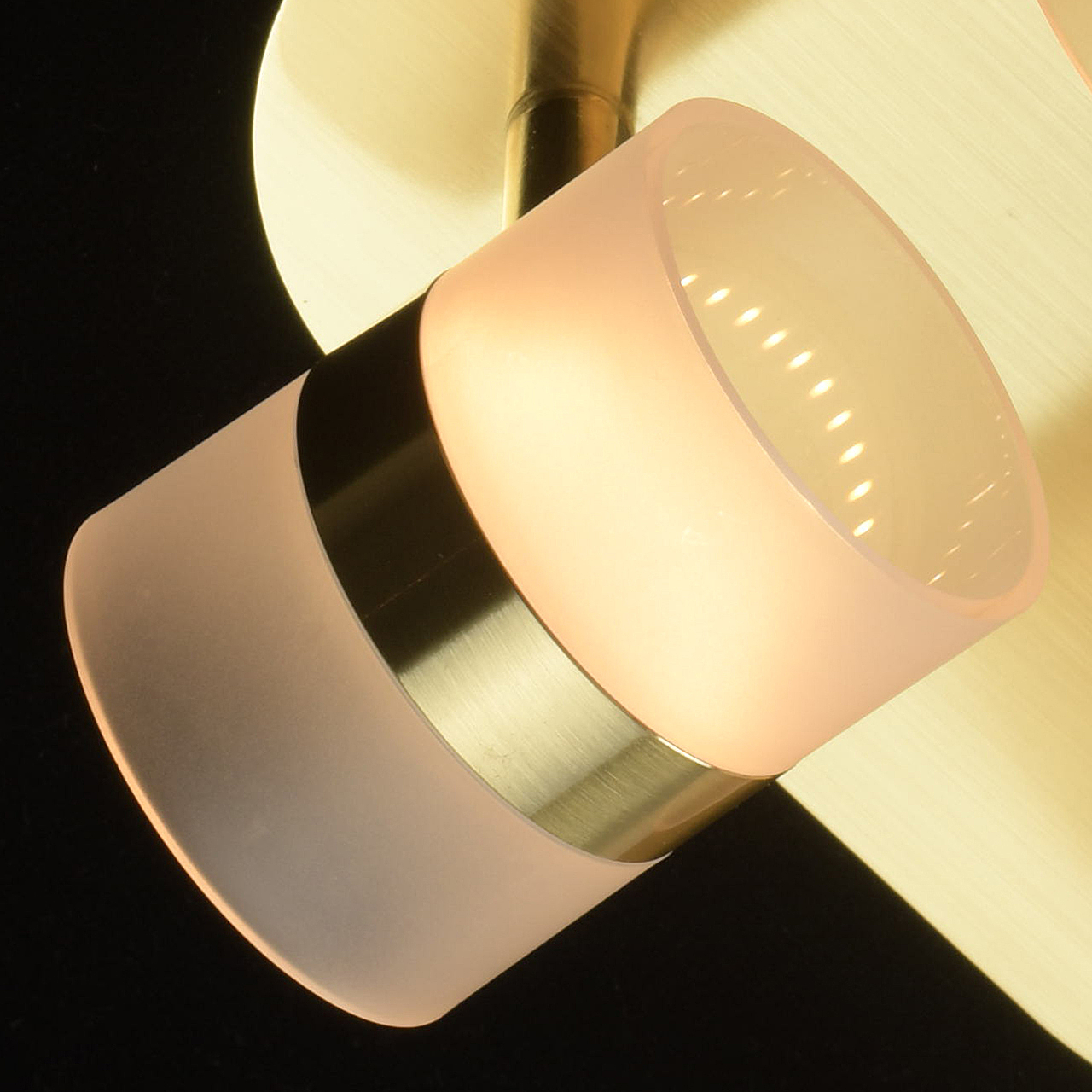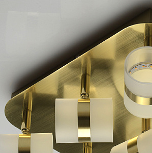 Светильник предназначен для подсветки современных интерьеров в стиле техно, минимализм, хай-тек. Его матовое металлическое основание выполнено в благородном золотом цвете и подчеркнуто миниатюрными плафонами из матового акрила. Благодаря подобранной цветовой палитре технологичная модель смотрится изящно и свежо.