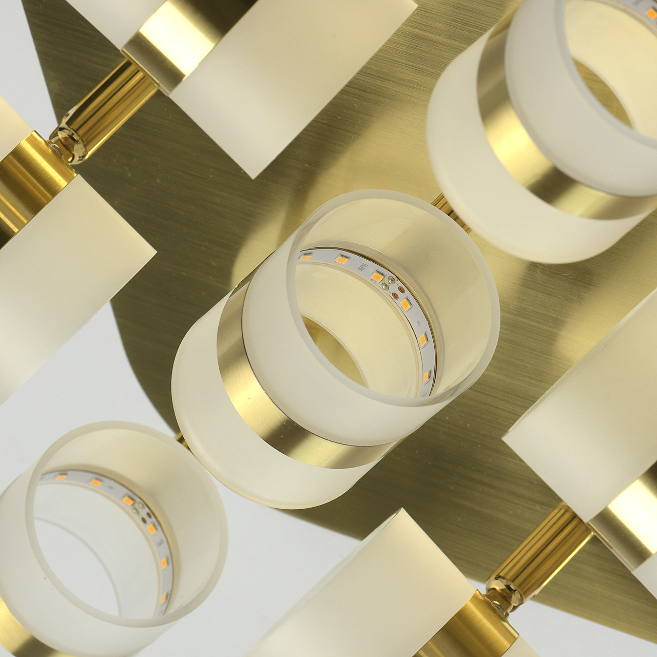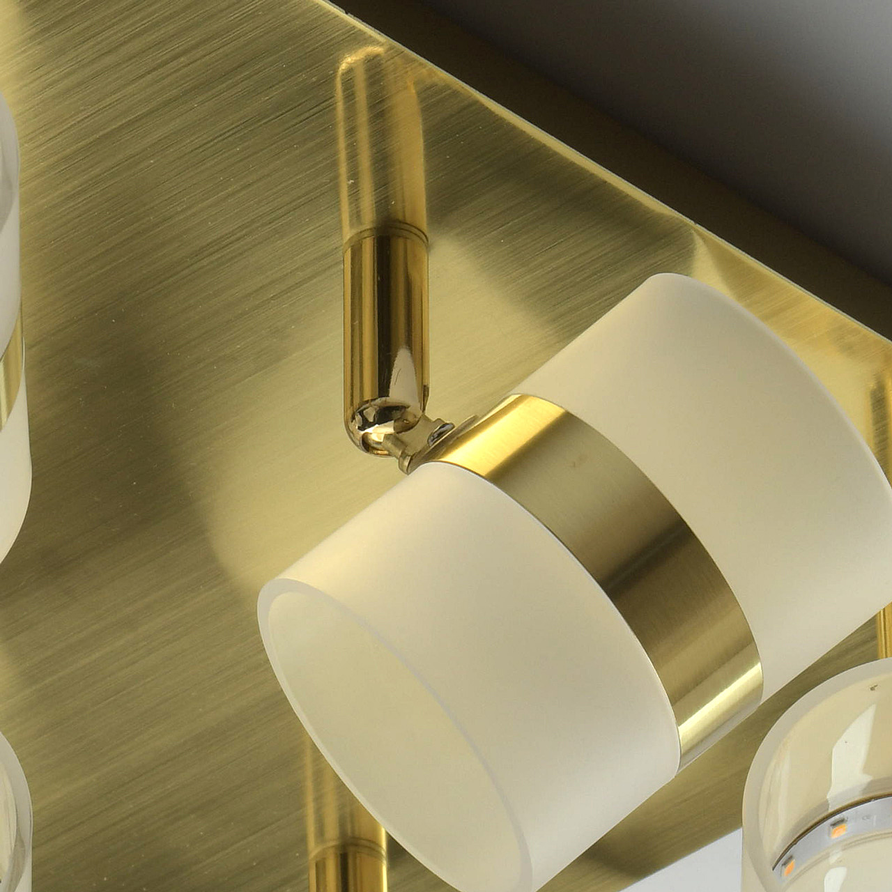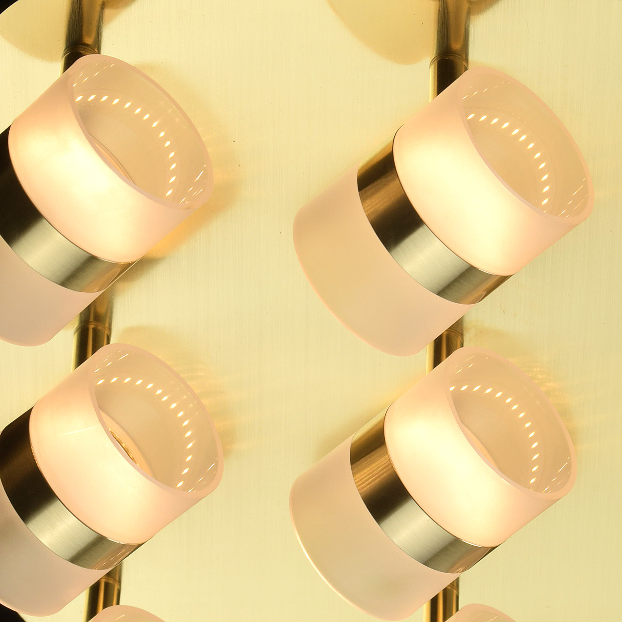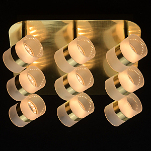 Светильник предназначен для подсветки современных интерьеров в стиле техно, минимализм, хай-тек. Его матовое металлическое основание выполнено в благородном золотом цвете и подчеркнуто миниатюрными плафонами из матового акрила. Благодаря подобранной цветовой палитре технологичная модель смотрится изящно и свежо.