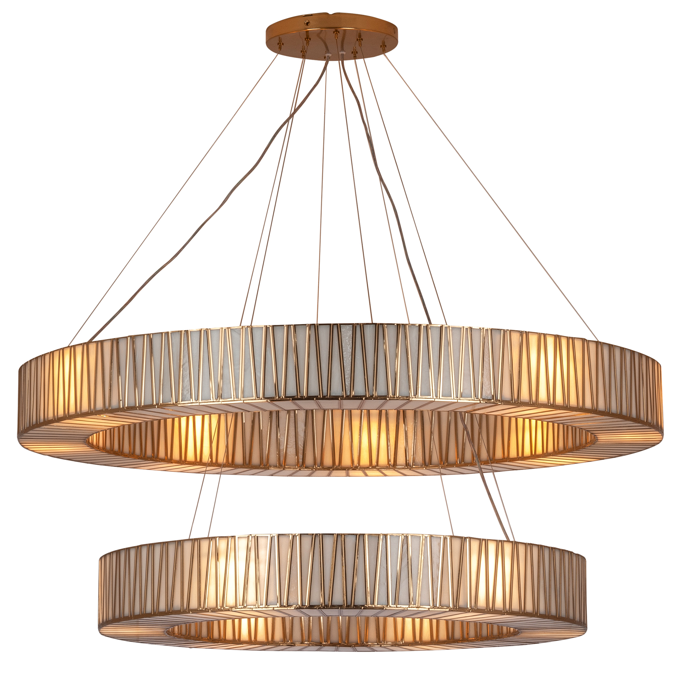 Допускается отличие страны-изготовителя, указанной в характеристиках. Линии производства могут находиться в нескольких государствах. Это не влияет на качество изготовления товара: все заводы данного бренда работают по общим стандартам, а готовые изделия проходят соответствующий контроль.Россия ЦветЦвет арматуры Белый, Состаренная латунь Цвет Латунь Материал арматуры Стекло, Латунь, Металл РазмерыВысота (мм) 640 Диаметр (мм) 1200 Ширина (мм) 1200 ЭлектрикаКоличество ламп (шт) 14*40W / Е27 Цоколь E27 Тип лампы Светодиодная, Накаливания, Энергосберегающая (КЛЛ) Мощность лампы (Вт) 40 Дополнительная информацияВес (Кг) 27,8 Тип подвеса На тросах -