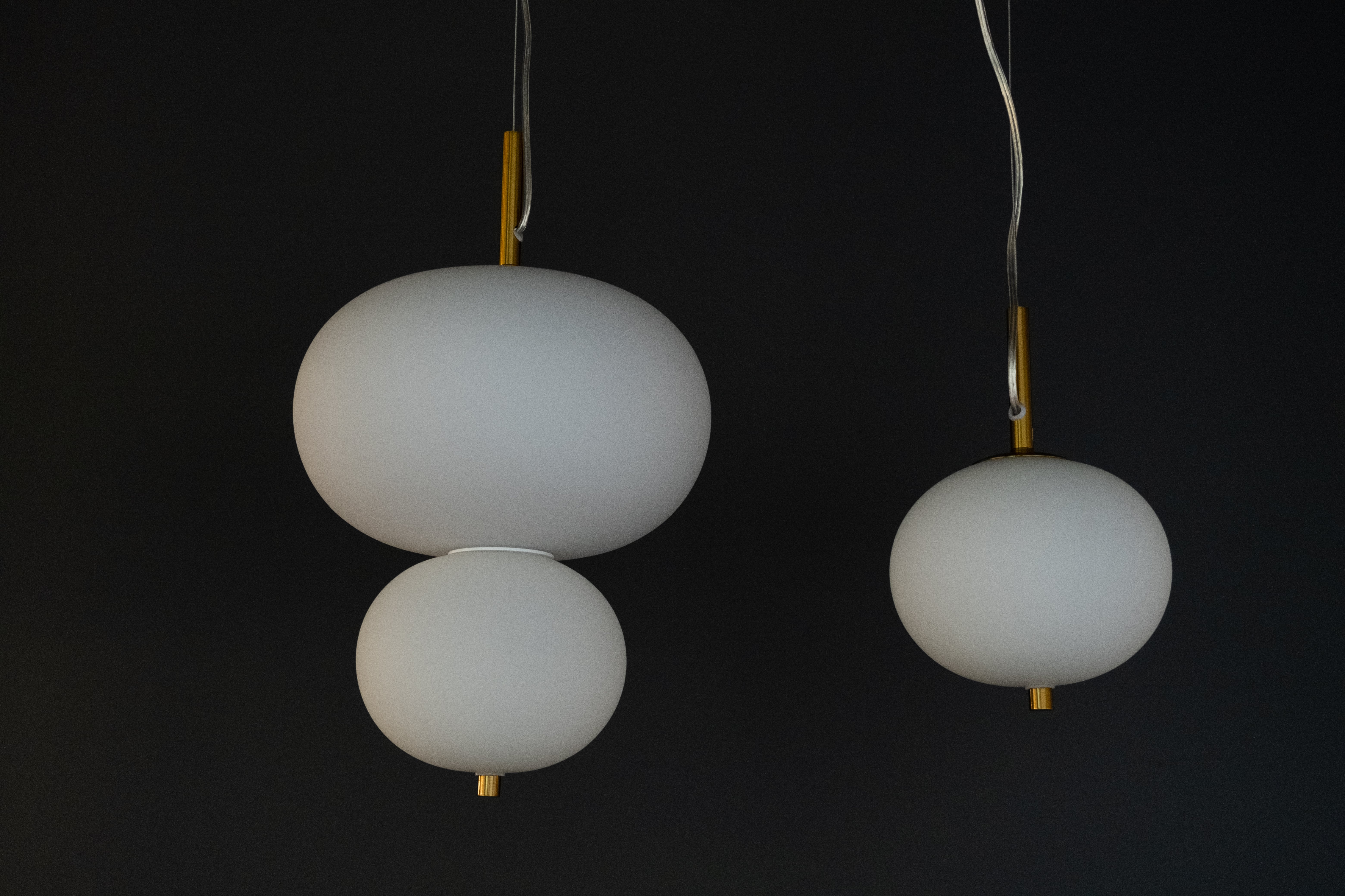 Подвесной светильник, подчеркнутый богатой латунью, со сферами белого цвета. Выдувные шары из опалового белого стекла распространяют чувственный свет, создающий теплую и естественную атмосферу. Источником света является встроенные светодиодные модули, расположенные в центре каждого шара и рассеивающие теплый свет по всем их окружностям. Подвесная система позволяет регулировать светильник по высоте. Простой, классический дизайн делает этот светильник полезным элементом во многих дизайнах интерьера. В коллекции так же есть светильник с одним плафоном.
