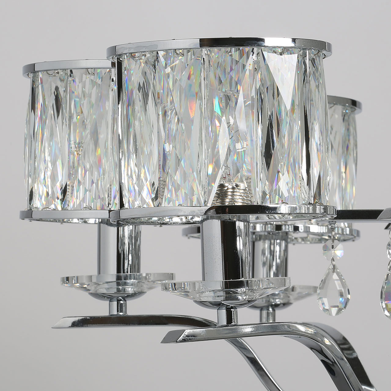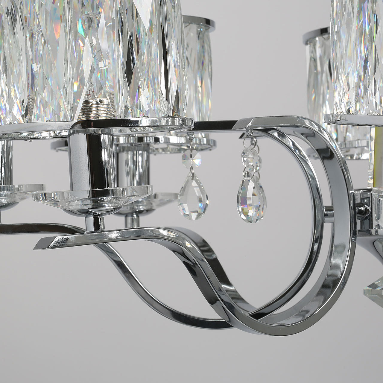 Трендовое сочетание хрусталя и цвета хрома смотрится актуально и современно.Хрустальный декор придает подвесной люстре роскоши.Хрусталь высокого качества создает красивую игру света.Открытые лампочки создают сценарий освещения, при котором хорошо освещается все пространство комнаты.Возможность регулировать комфортную высоту.Заменяемые источники света удобны в эксплуатации.