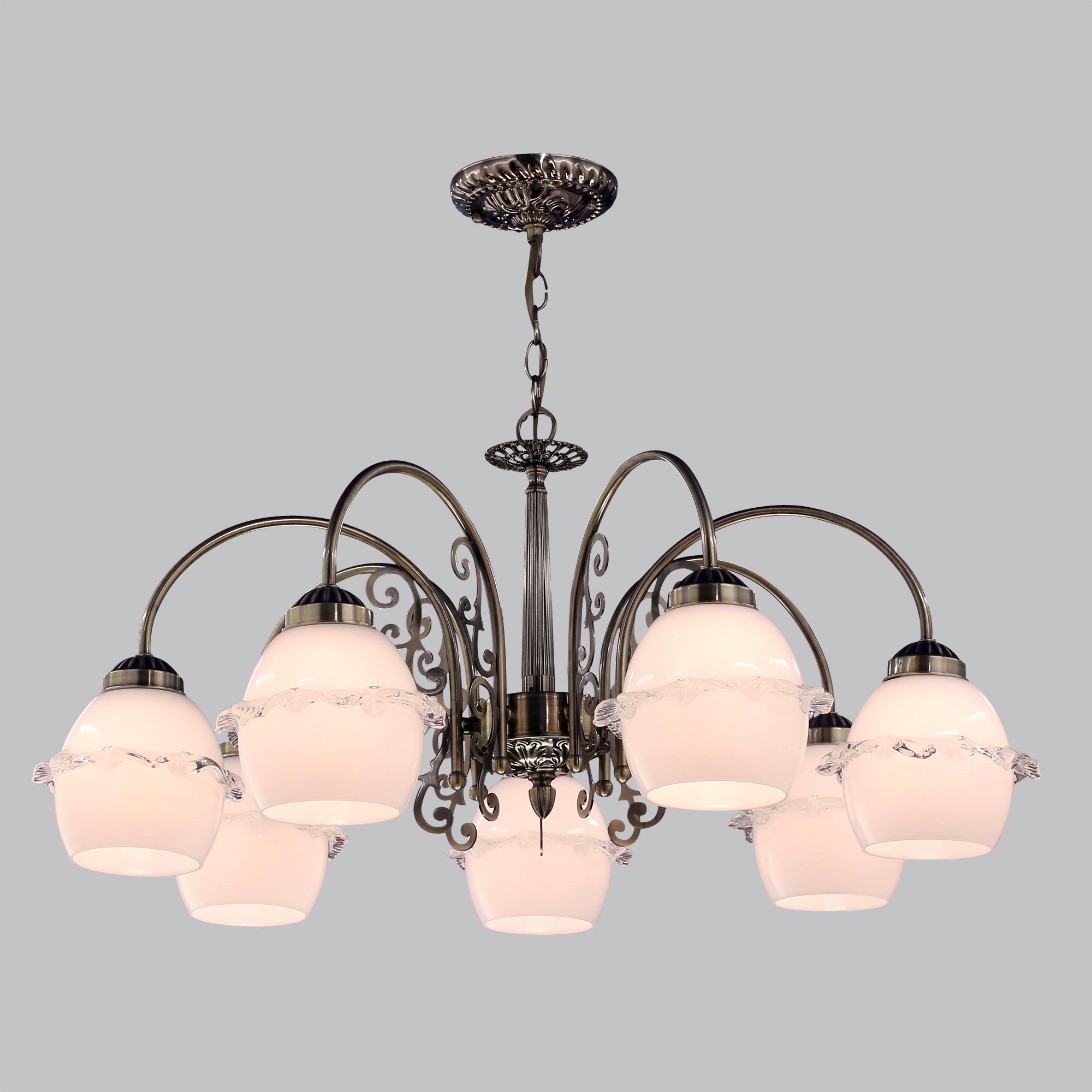 Допускается отличие страны-изготовителя, указанной в характеристиках. Линии производства могут находиться в нескольких государствах. Это не влияет на качество изготовления товара: все заводы данного бренда работают по общим стандартам, а готовые изделия проходят соответствующий контроль.Дания Коллекция Кампана ЦветЦвет арматуры Бронза Цвет Бронза Материал арматуры Металл Цвет плафона Белый Материал плафона Стекло РазмерыВысота (мм) 430 Диаметр (мм) 720 Высота минимальная (мм) 430 Ширина (мм) 720 ЭлектрикаКоличество ламп (шт) 7 Цоколь E27 Тип лампы Светодиодная, Галогеновая, Накаливания, Энергосберегающая (КЛЛ) Мощность лампы (Вт) 75 Общая мощность (Вт) 525 Напряжение (В) 220 Площадь освещения 25 Дополнительная информацияСпособ крепления Планка Степень защиты (IP) IP20 Тип подвеса На цепи -