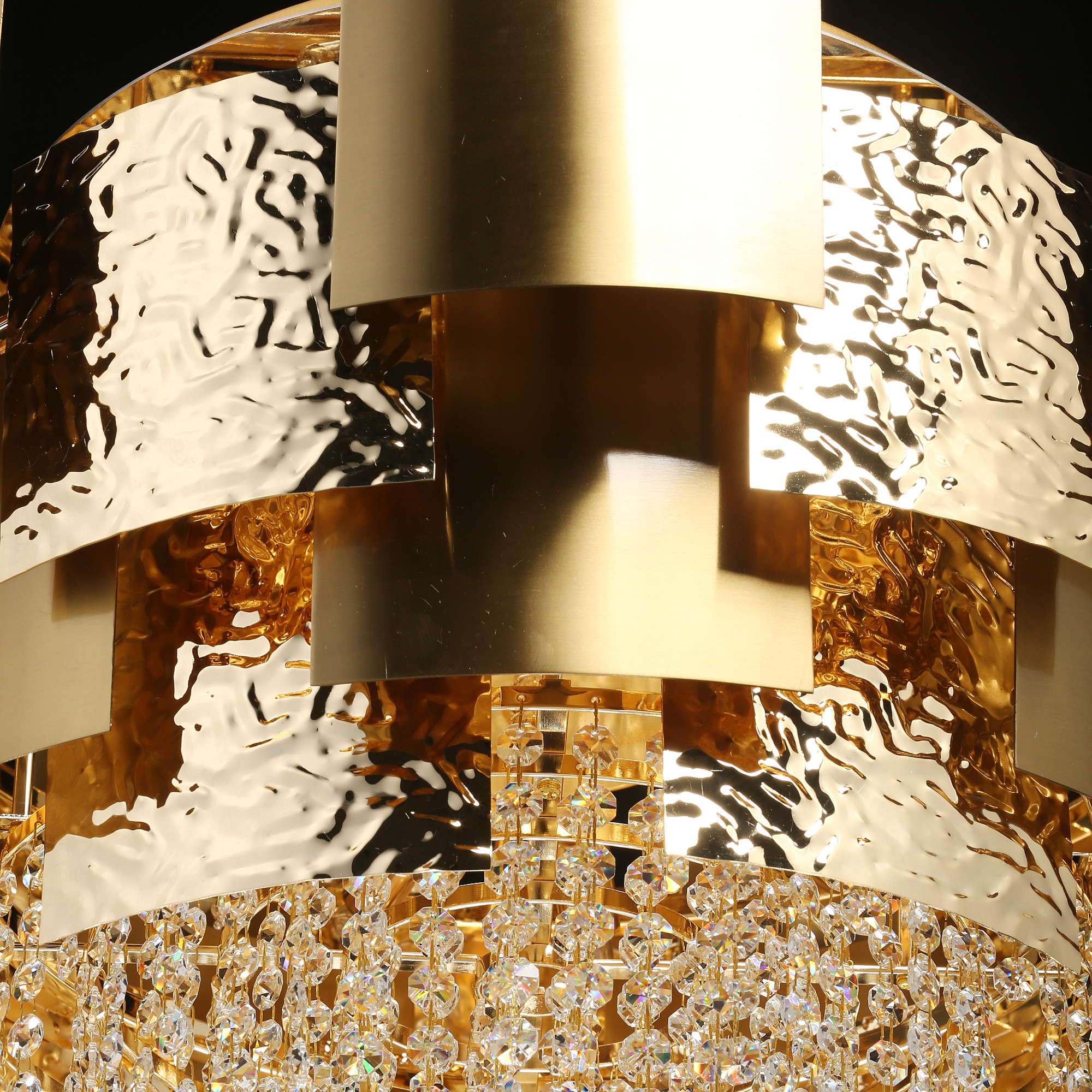 Дизайнерский светильник это безусловное преимущество для ценителей арт-объектов в интерьере.Фирменный хрусталь CHIARO с премиальными параметрами чистоты и прозрачности создает мягкий, искрящийся свет.Модная комбинация матового золотого и глянцевого металлов дополняет гламурный образ модели в стиле ар-деко.Варианты диаметра моделей облегчают выбор.Полная семья из бра, потолочных светильников на 16 и 24 ламп и подвеса на 26 ламп.
