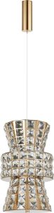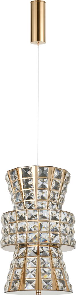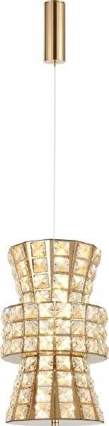 Светильник подвесной эксклюзивной коллекции Karnelli выполнен из нержавеющей стали золотого цвета и декорирован текстурным хрусталем высшей категории. Модель комплектуется пультом дистанционного управления 2,4G и драйвером высокого качества европейского стандарта T?V, обеспечивающим переключение трех режимов световой температуры и диммирование. Премиальное качество и неповторимыи? дизаи?н светильников идеально подои?дут как в классические, так и современные дизайнерские интерьеры. Из данной коллекции светильников можно сделать индивидуальный заказ любого цвета и размера.