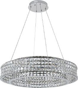 Люстра подвесная эксклюзивной коллекции Karnelli выполнена из нержавеющей стали хромированного цвета и декорирована текстурным хрусталем высшей категории. Модель комплектуется пультом дистанционного управления 2,4G и драйвером высокого качества европейского стандарта T?V, обеспечивающим переключение трех режимов световой температуры и диммирование. Премиальное качество и неповторимыи? дизаи?н светильников идеально подои?дут как в классические, так и современные дизайнерские интерьеры. Из данной коллекции светильников можно сделать индивидуальный заказ любого цвета и размера.
