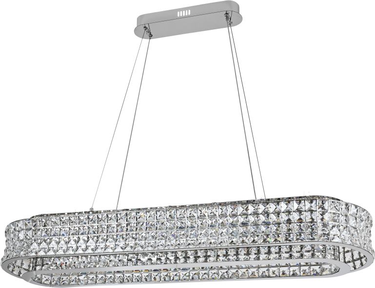 Люстра подвесная вытянутой формы эксклюзивной коллекции Karnelli выполнена из нержавеющей стали хромированного цвета и декорирована текстурным хрусталем высшей категории. Модель комплектуется пультом дистанционного управления 2,4G и драйвером высокого качества европейского стандарта T?V, обеспечивающим переключение трех режимов световой температуры и диммирование. Светильник идеально впишется в современные и дизайнерские интерьеры. Из данной коллекции светильников можно сделать индивидуальный заказ любого цвета и размера.