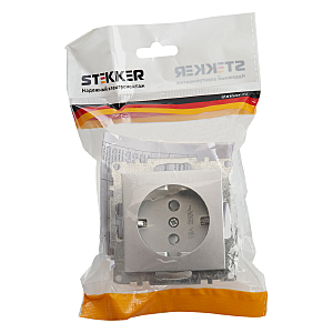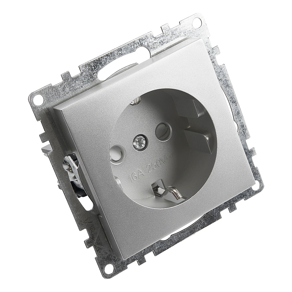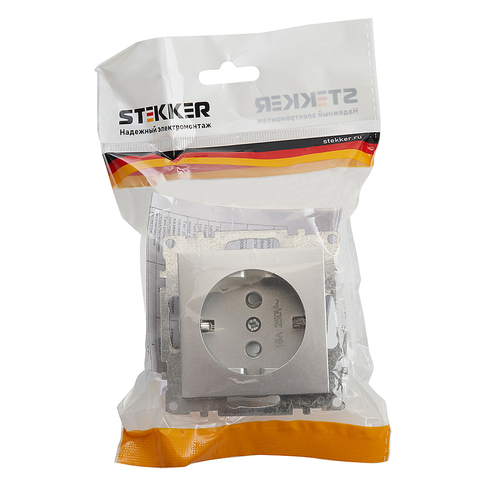Розетка Stekker Gls16-7110-03 На 1 Гнездо, С Заземлением. Материал: Abs Пластик, Латунь, Цвет Серебро, Размер 55*55*35Мм. Номинальное Напряжение 250, Номинальный Ток 16А, Диапазон Рабочих Температур 0..+35градусовC, Ip20
