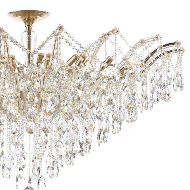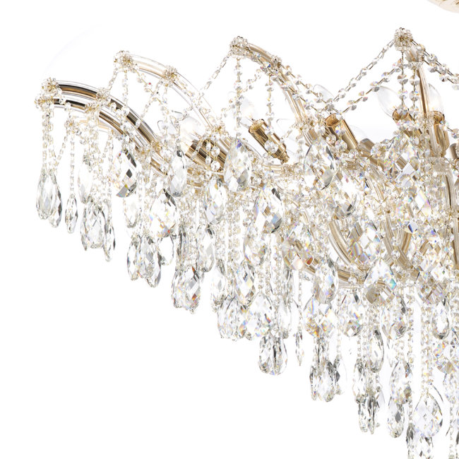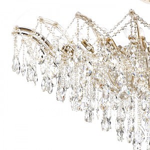 Допускается отличие страны-изготовителя, указанной в характеристиках. Линии производства могут находиться в нескольких государствах. Это не влияет на качество изготовления товара: все заводы данного бренда работают по общим стандартам, а готовые изделия проходят соответствующий контроль.Испания Коллекция Kaya ЦветЦвет арматуры Золото Цвет Золото Материал арматуры Металл Цвет декора прозрачный Материал декора Хрустальные подвесы РазмерыВысота (мм) 800 Длина (мм) 1500 Диаметр (мм) 1500 Ширина (мм) 1500 ЭлектрикаКоличество ламп (шт) 30 Цоколь E14 Тип лампы Светодиодная, Накаливания, Энергосберегающая (КЛЛ) Лампочки в комплекте Нет в комплекте Мощность лампы (Вт) 40 Площадь освещения 90 Дополнительная информацияСтепень защиты (IP) IP20 Вес (Кг) 47,5 -