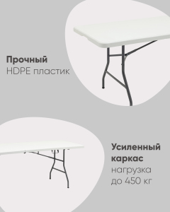Стол складной чемодан пластиковый Кейт 240, стальной каркас, полиэтилен высокой плотности HDPE