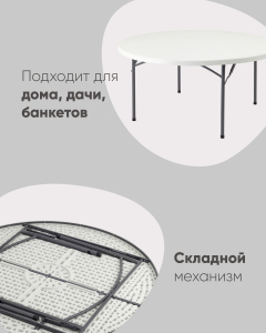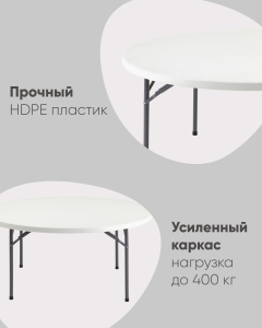 Стол круглый складной пластиковый Кейт 160, стальной каркас, полиэтилен высокой плотности HDPE