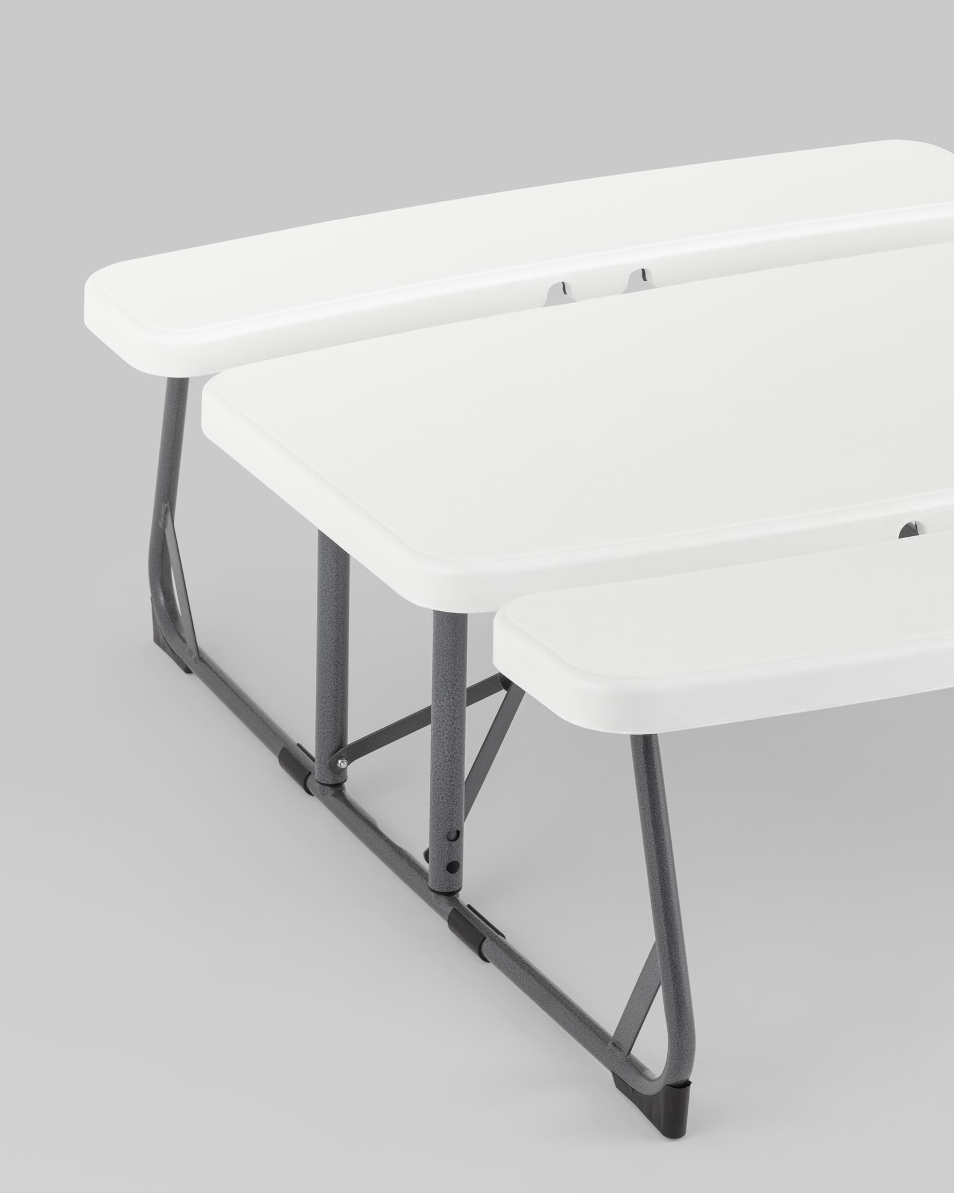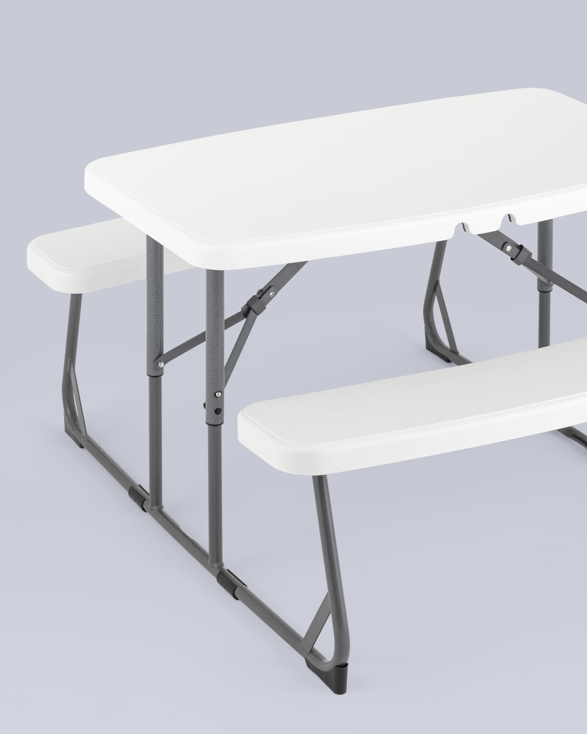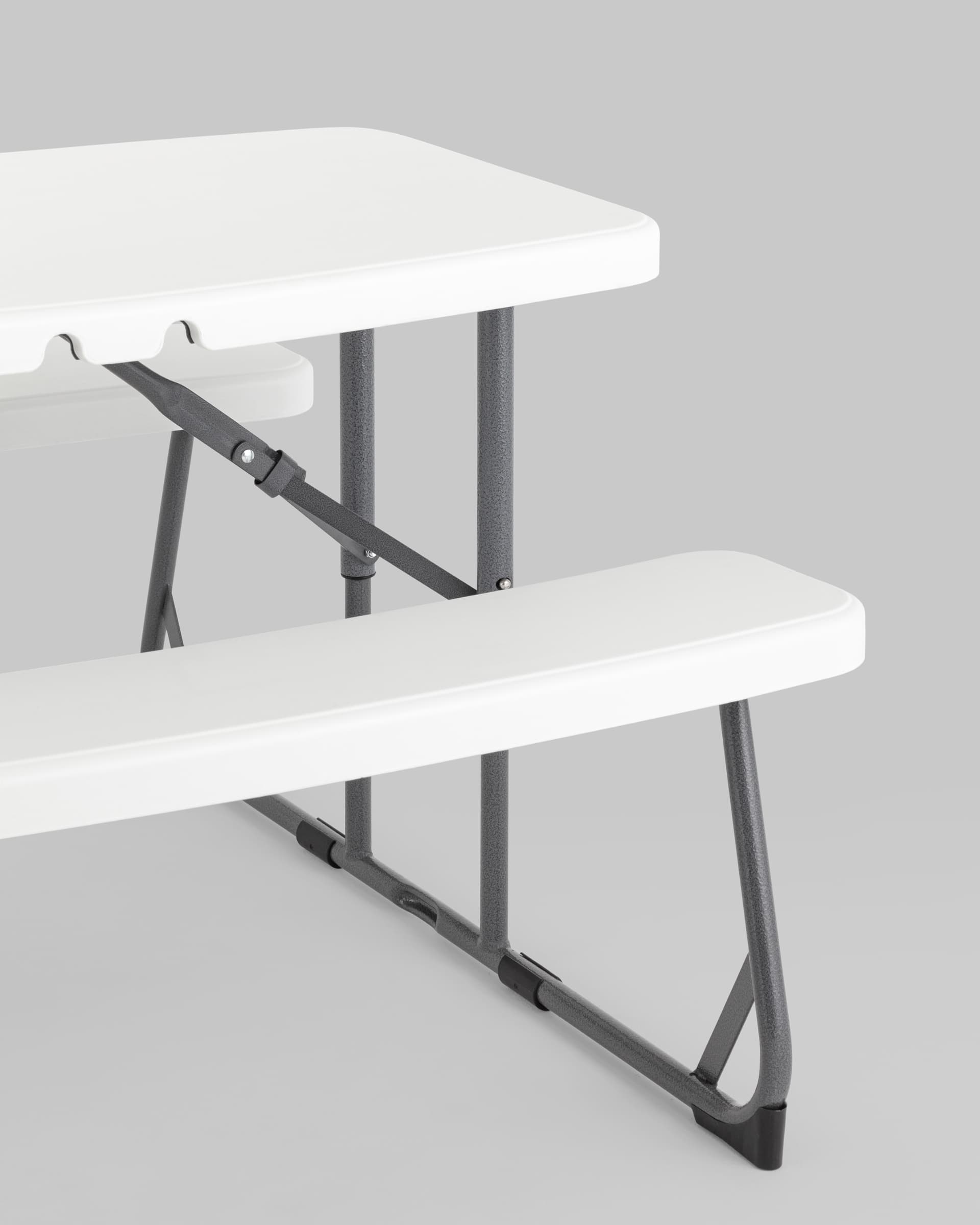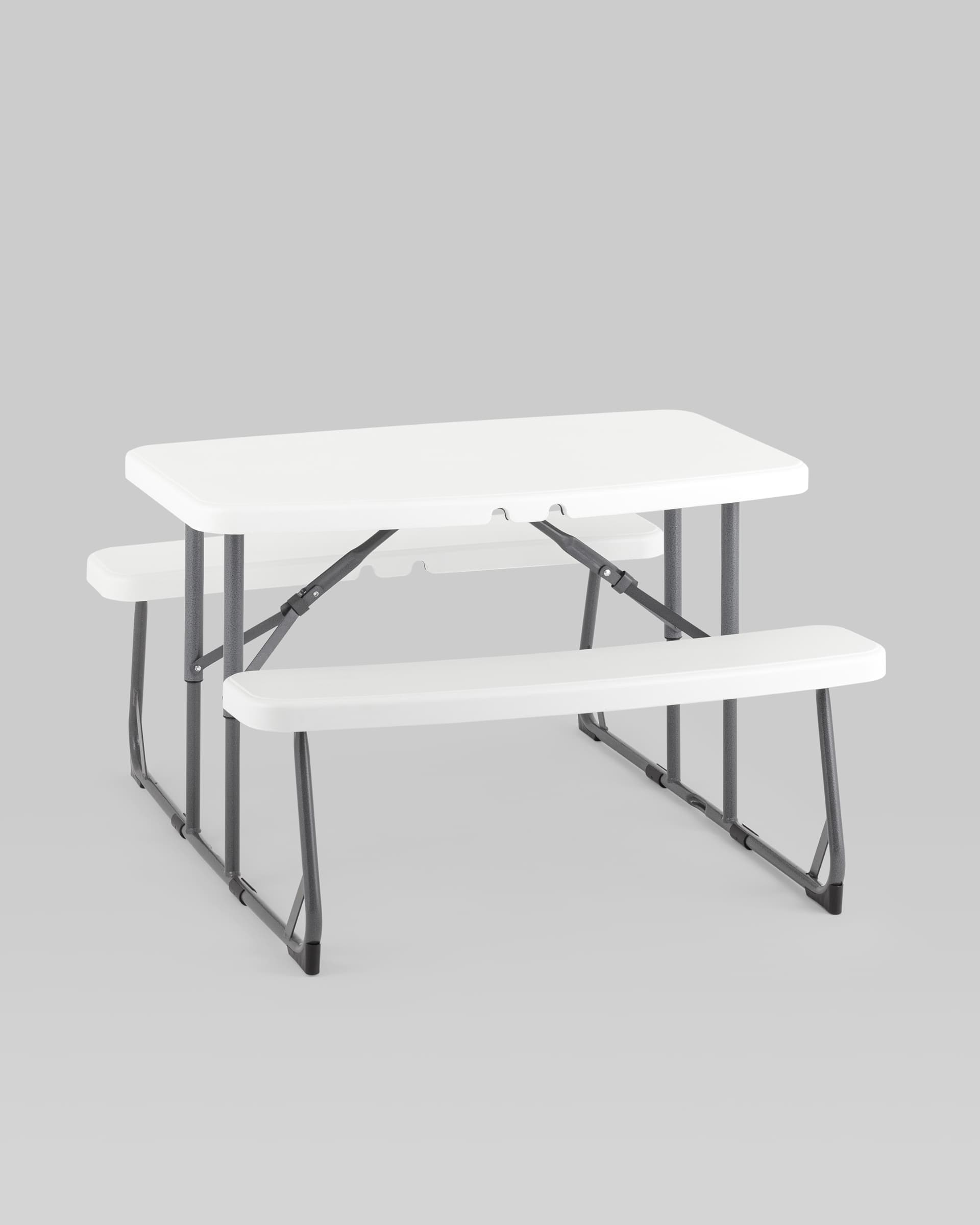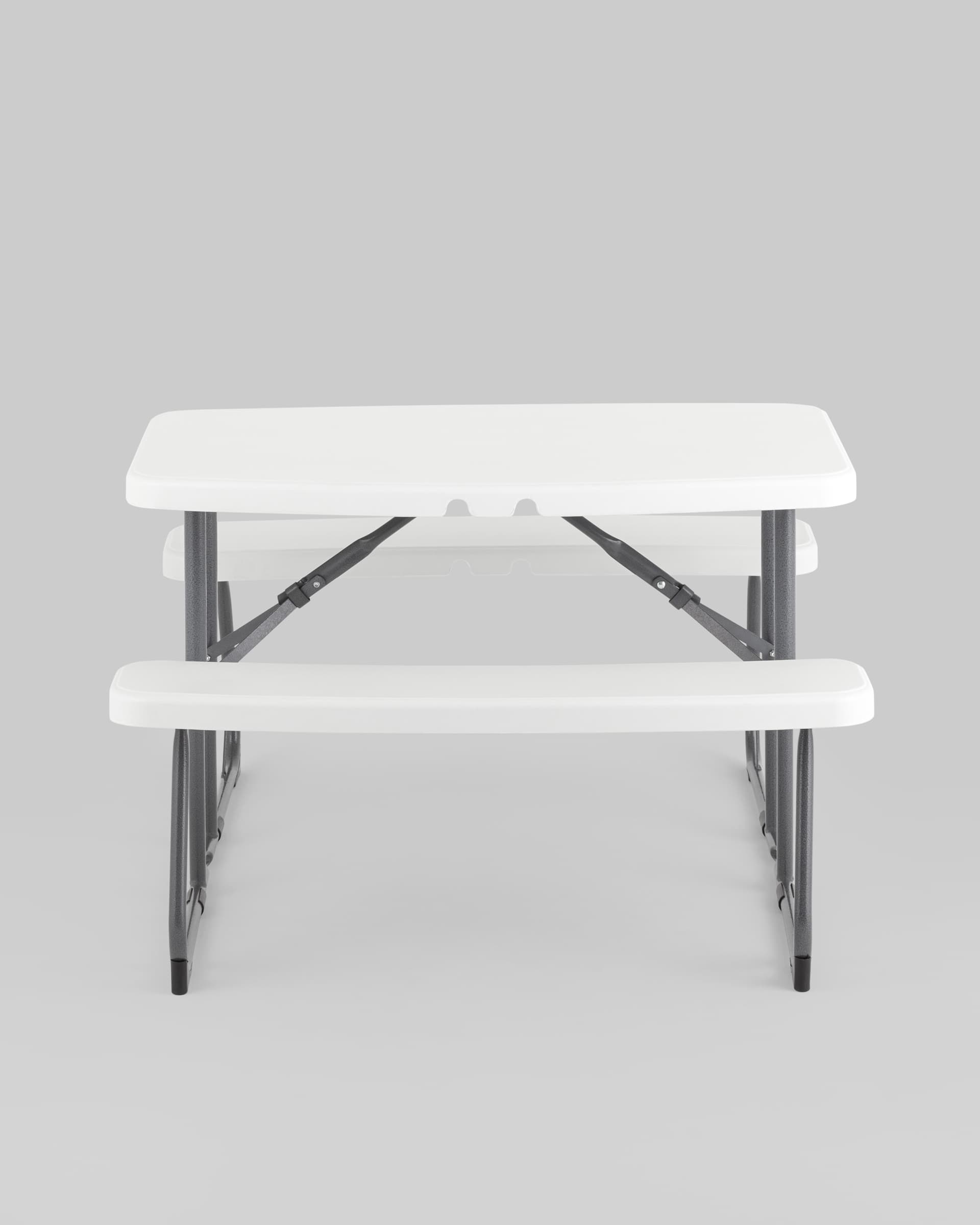 Комплект складной мебели из стола и двух скамеек Кейт детский белый пластик HDPE каркас стальная труба
