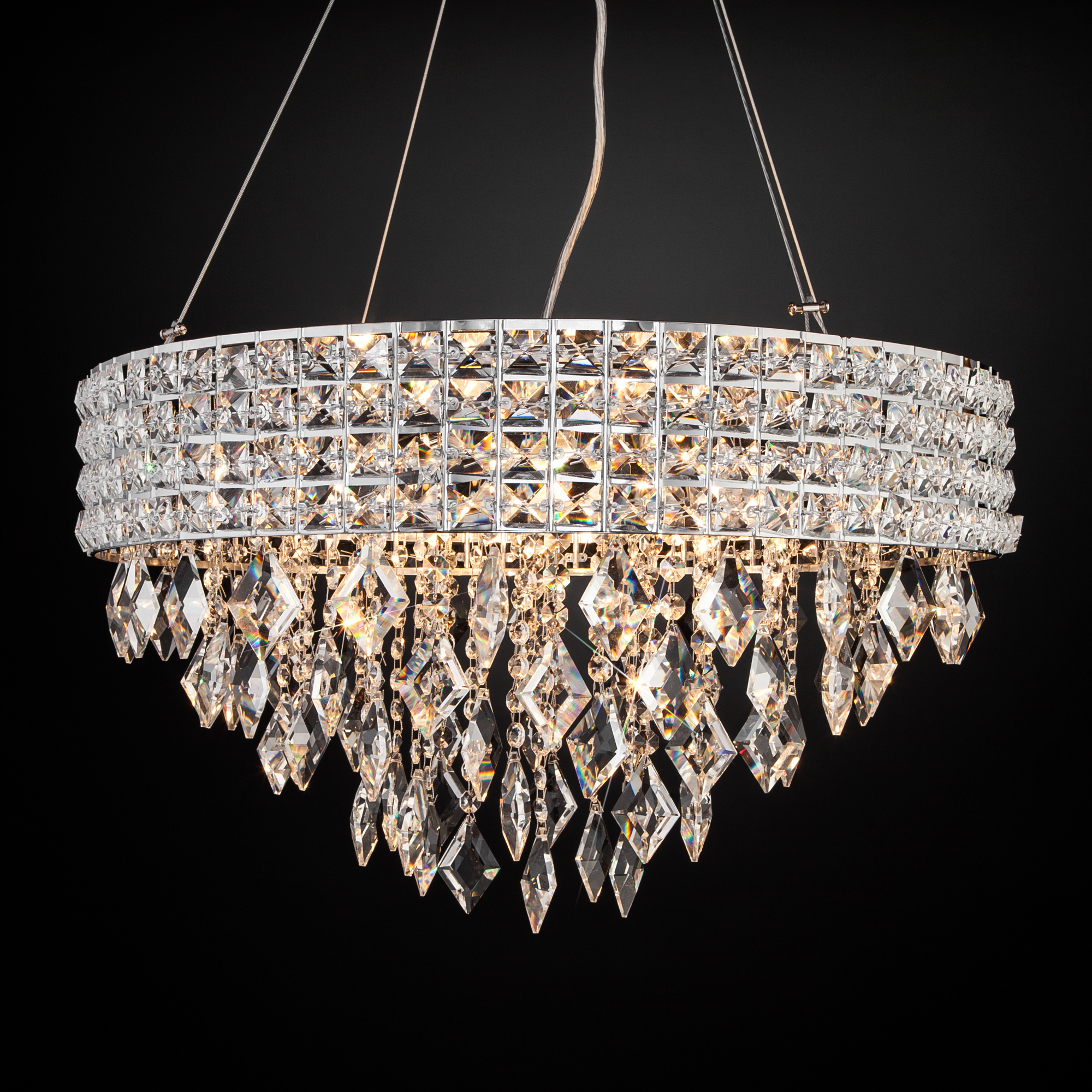 Допускается отличие страны-изготовителя, указанной в характеристиках. Линии производства могут находиться в нескольких государствах. Это не влияет на качество изготовления товара: все заводы данного бренда работают по общим стандартам, а готовые изделия проходят соответствующий контроль.Китай Коллекция Kira ЦветЦвет арматуры Хром Цвет Хром Материал арматуры Металл Цвет декора прозрачный Материал декора Хрусталь РазмерыВысота (мм) 1200 Длина (мм) 550 Высота минимальная (мм) 350 Ширина (мм) 550 ЭлектрикаКоличество ламп (шт) 8 Цоколь E14 Мощность лампы (Вт) 60 Напряжение (В) 220 Площадь освещения 24 Дополнительная информацияСпособ крепления Планка Степень защиты (IP) IP20 Тип подвеса На тросах -