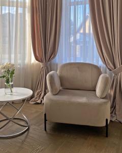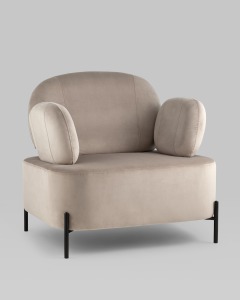 Кресло Кэнди с подлокотниками велюр серо-бежевый ножки металл