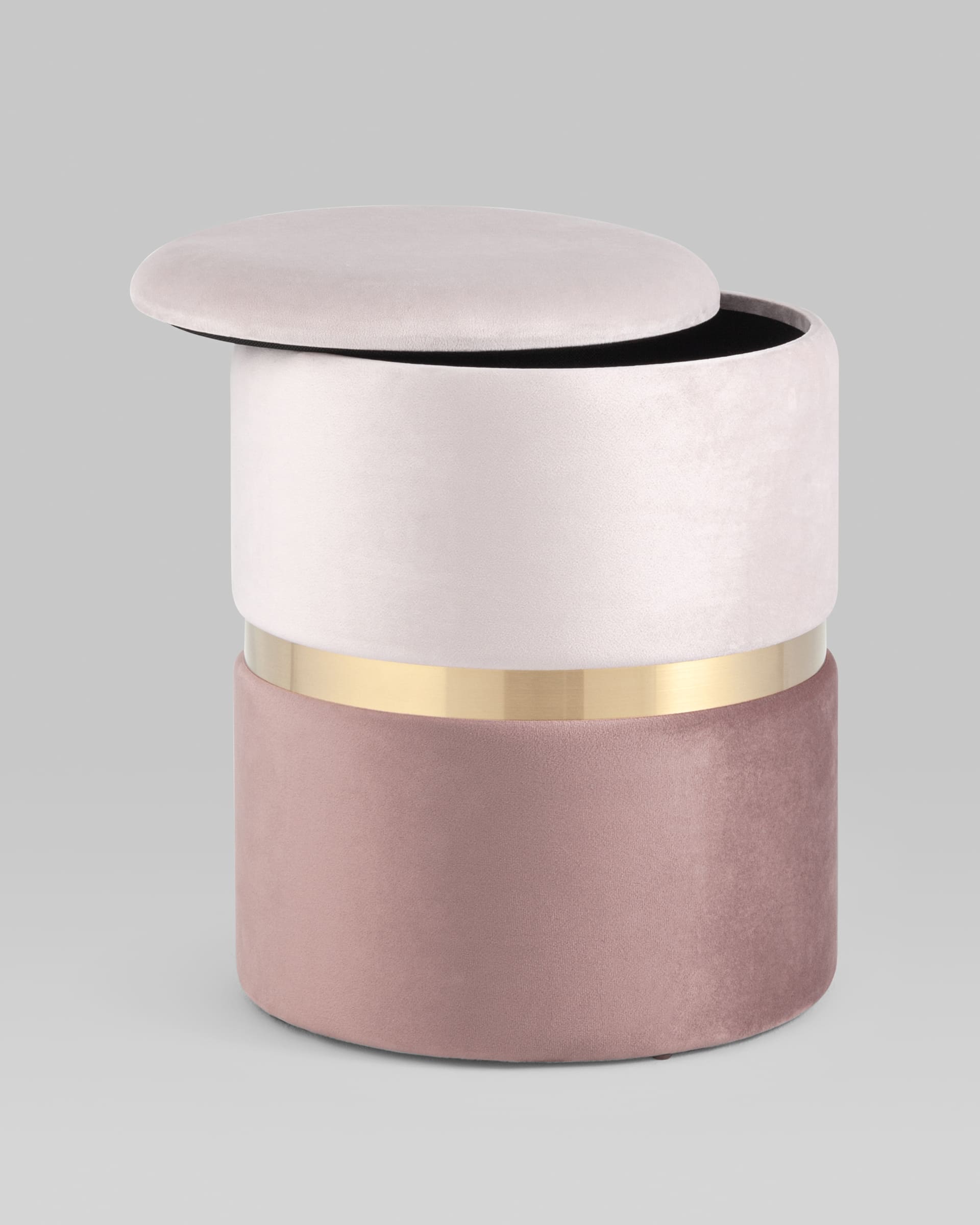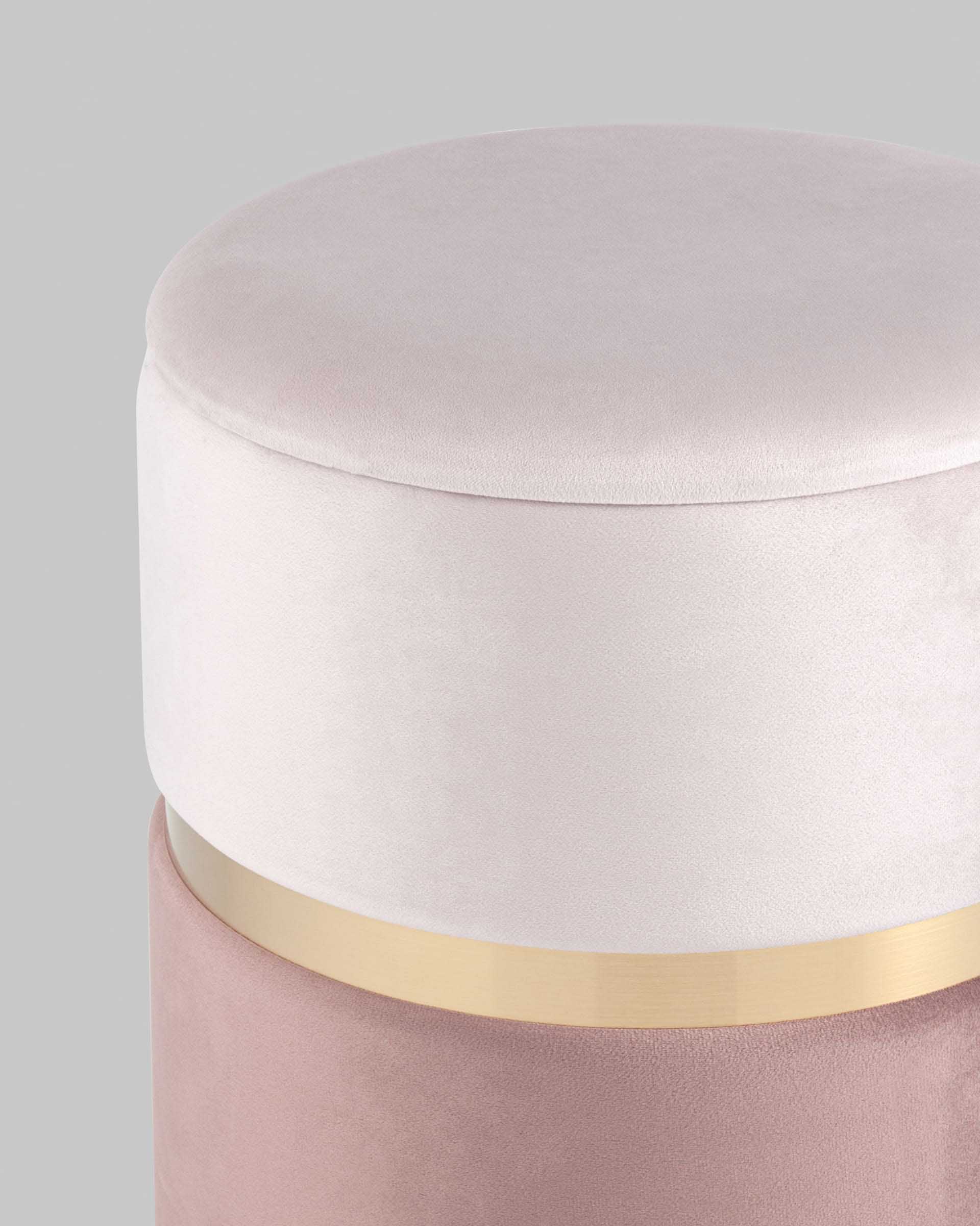 Пуф Кэрри с ящиком велюр розовый с декоративным золотым ободком