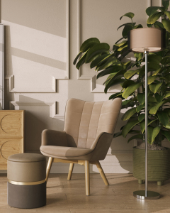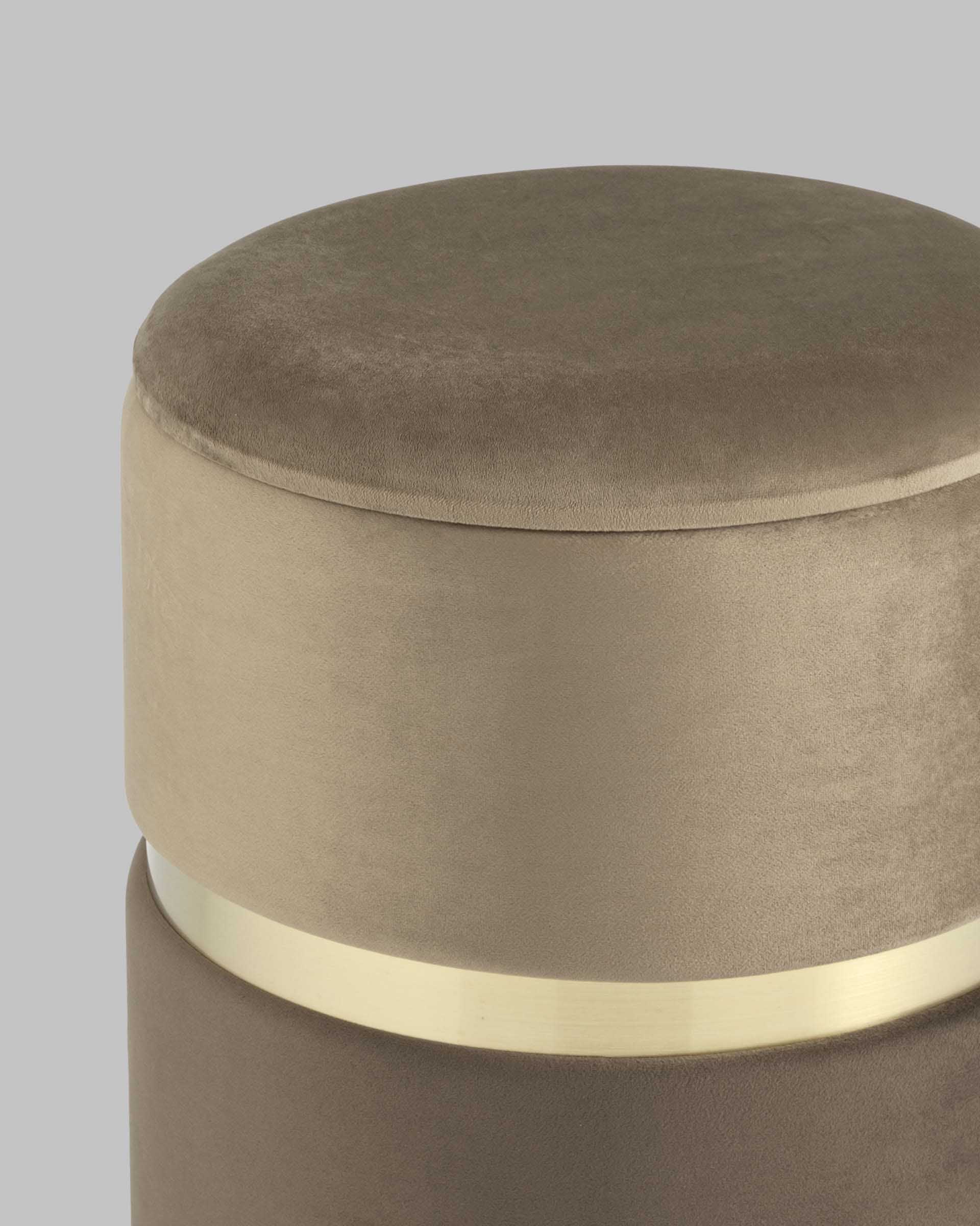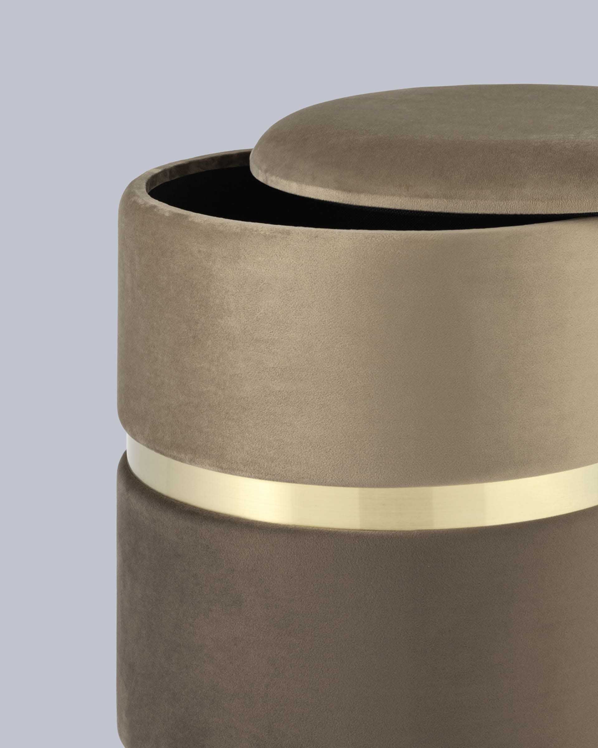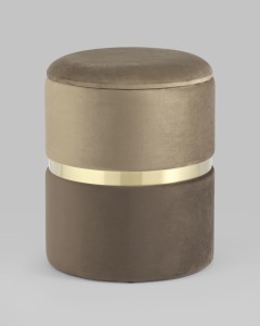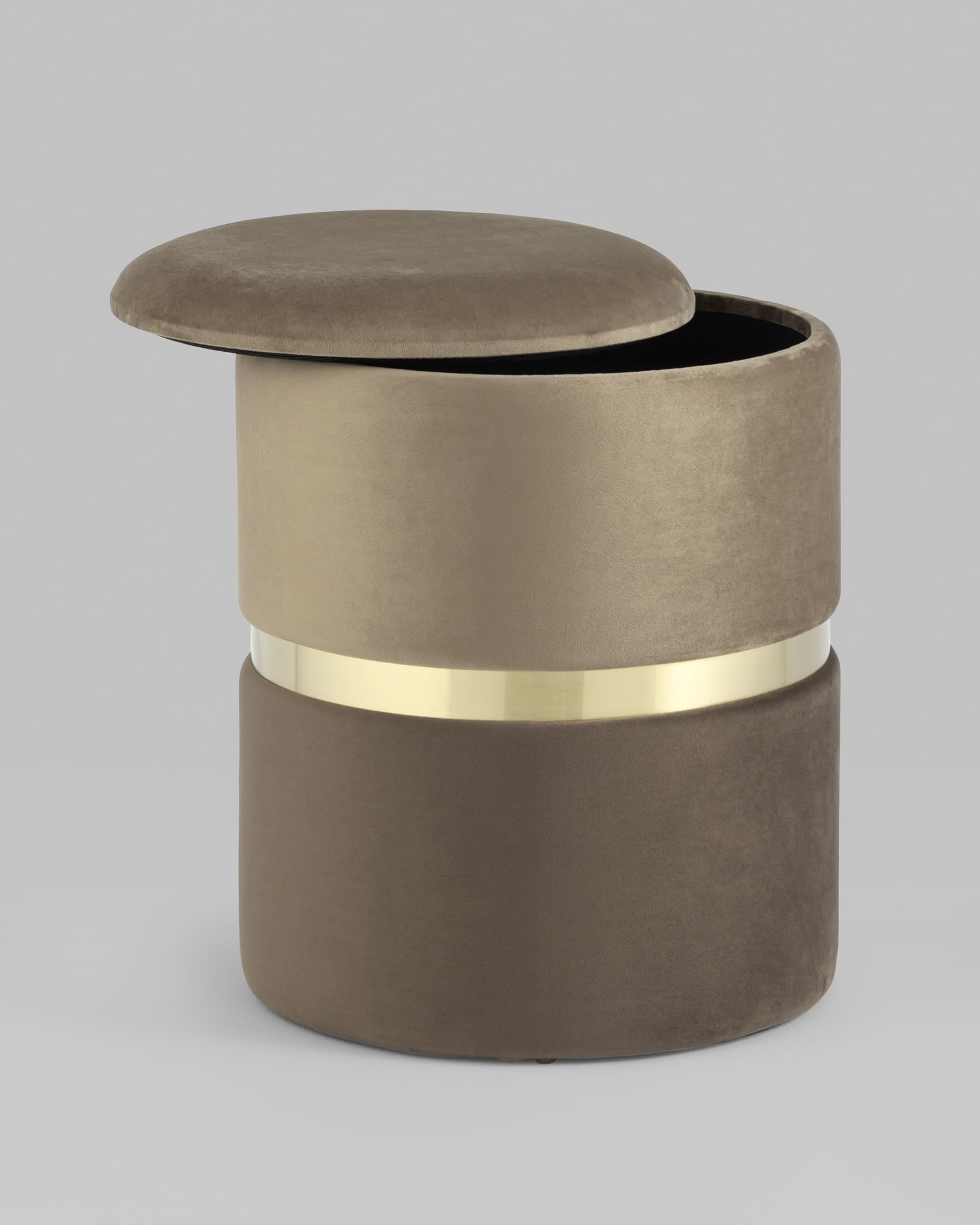 Пуф Кэрри с ящиком велюр коричневый с декоративным золотым ободком