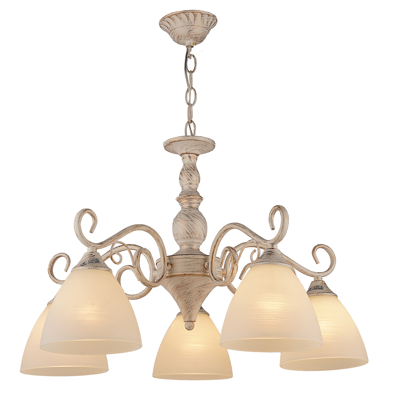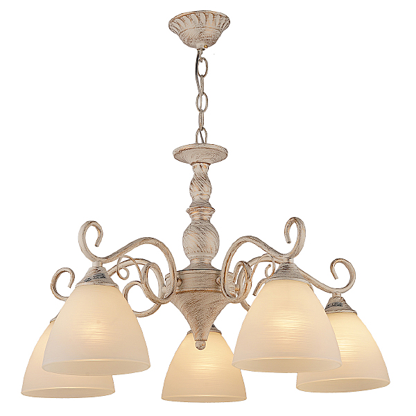 Допускается отличие страны-изготовителя, указанной в характеристиках. Линии производства могут находиться в нескольких государствах. Это не влияет на качество изготовления товара: все заводы данного бренда работают по общим стандартам, а готовые изделия проходят соответствующий контроль.Германия ЦветЦвет арматуры Белый Золото Патина Цвет Белый Материал арматуры Металл Цвет плафона белый матовый Материал плафона Стекло РазмерыВысота (мм) 605 Диаметр (мм) 565 Ширина (мм) 565 ЭлектрикаКоличество ламп (шт) 5 Цоколь E27 Мощность лампы (Вт) 60 Общая мощность (Вт) 300 Напряжение (В) 220 Дополнительная информацияТип подвеса На цепи -