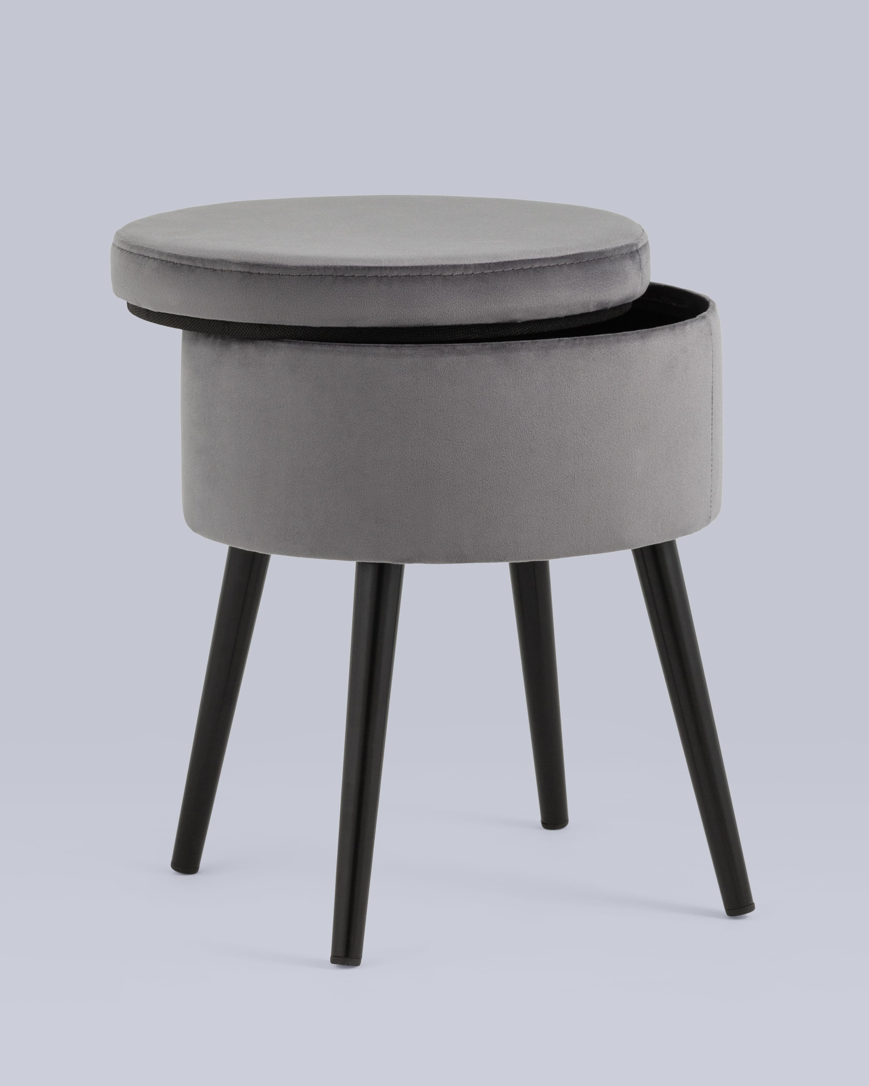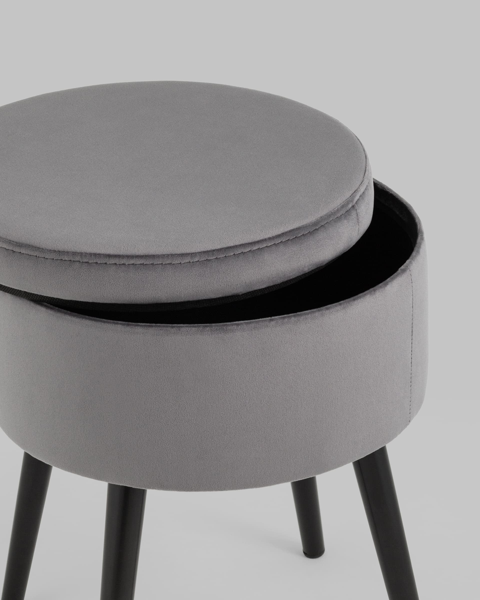 Пуф Клайс с ящиком велюр серый ножки металл черные