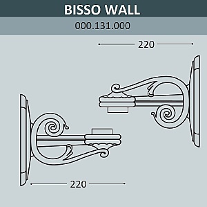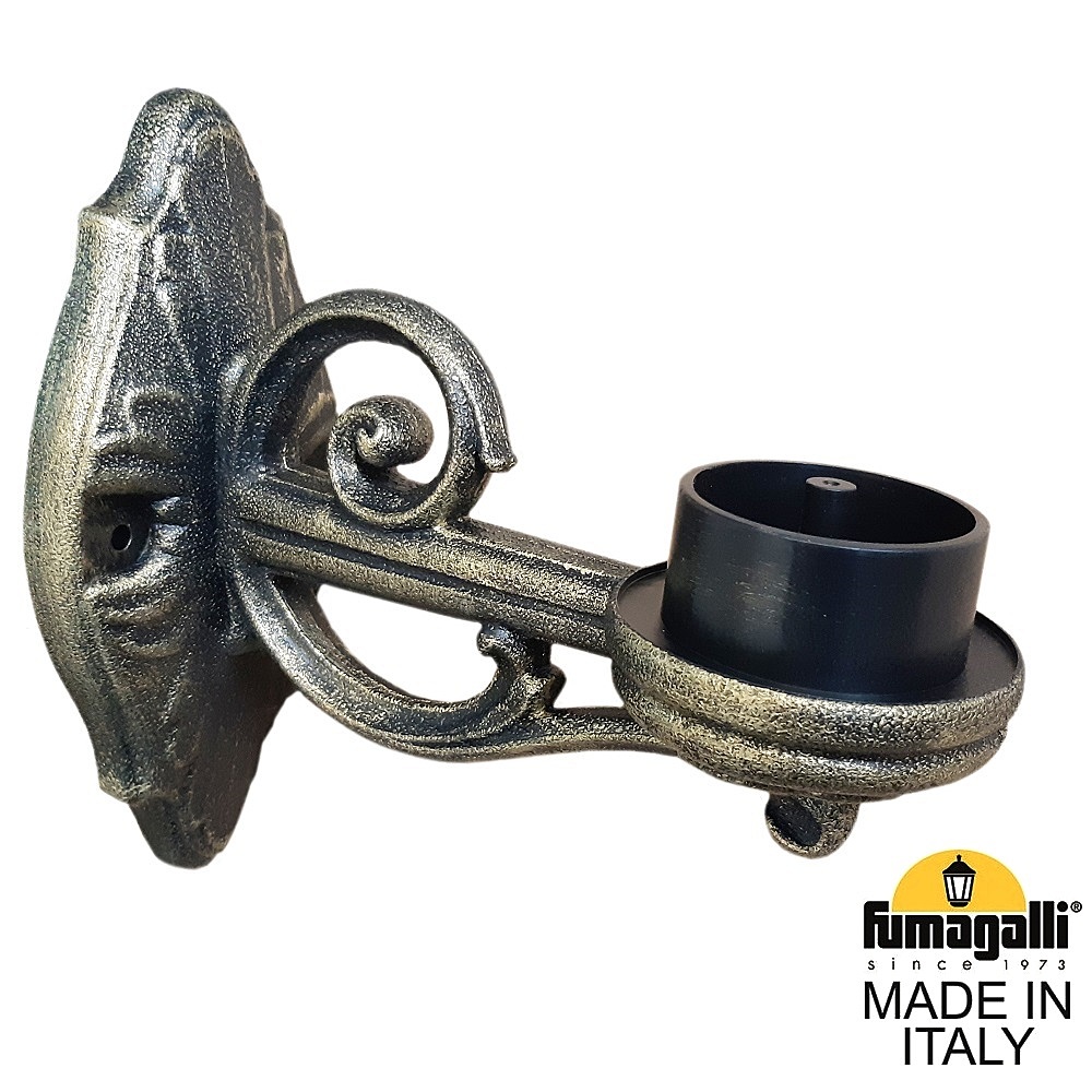 Консоль паркового фонаря на стену FUMAGALLI серии BISSO, модель BISSO WALL. Классическая консоль малого размера для парковых светильников малой и средней серии. Монтаж на стену в положение "вверх" и "вниз" с помощью штатного комплекта крепежа. Посадочный диаметр для светильника - 60 мм, фиксация с помощью стопорного винта или декоративной гайки (колпачка). Дизайн классический, имитация чугунного литья или ковки. Изготовлена по технологии FUMATECH, с использованием материалов с разными физическими свойствами. В центре изделия расположена стальная, оцинкованная с двух сторон трубка, (внутри проходят провода), которая придает дополнительную прочность и жесткость конструкции. С внешней стороны используется сверхпрочный технологичный полимерный материал RESIN, который защищает поверхность от агрессивного воздействия всех атмосферных факторов (покрытие не ржавеет, не выгорает на солнце, не боится солей и реагентов). Не проводит электричество!!! Кронштейн и светильник на ней не требуют заземления и относятся к 2 классу электробезопасности. Срок службы - не менее 20 лет. Температура эксплуатации от -60 до +90. Для установки парковых фонарей на опоры освещения FUMAGALLI можно использовать консоли BISSO SYS (системные), которые собираются в парковый торшер из одного, двух, трех или четырех фонарей.