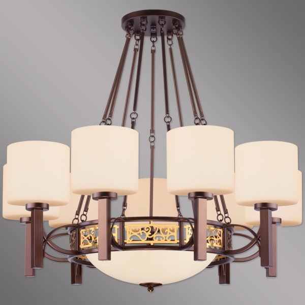 Допускается отличие страны-изготовителя, указанной в характеристиках. Линии производства могут находиться в нескольких государствах. Это не влияет на качество изготовления товара: все заводы данного бренда работают по общим стандартам, а готовые изделия проходят соответствующий контроль.Польша Коллекция Korento ЦветЦвет арматуры Золото, Коричневый Цвет Коричневый Материал арматуры Металл Цвет плафона Белый Материал плафона Стекло РазмерыВысота (мм) 560 Диаметр (мм) 690 ЭлектрикаКоличество ламп (шт) 10 Цоколь E14 Мощность лампы (Вт) 60W Напряжение (В) 220 Дополнительная информацияВес (Кг) 8.00 Тип подвеса На цепи -