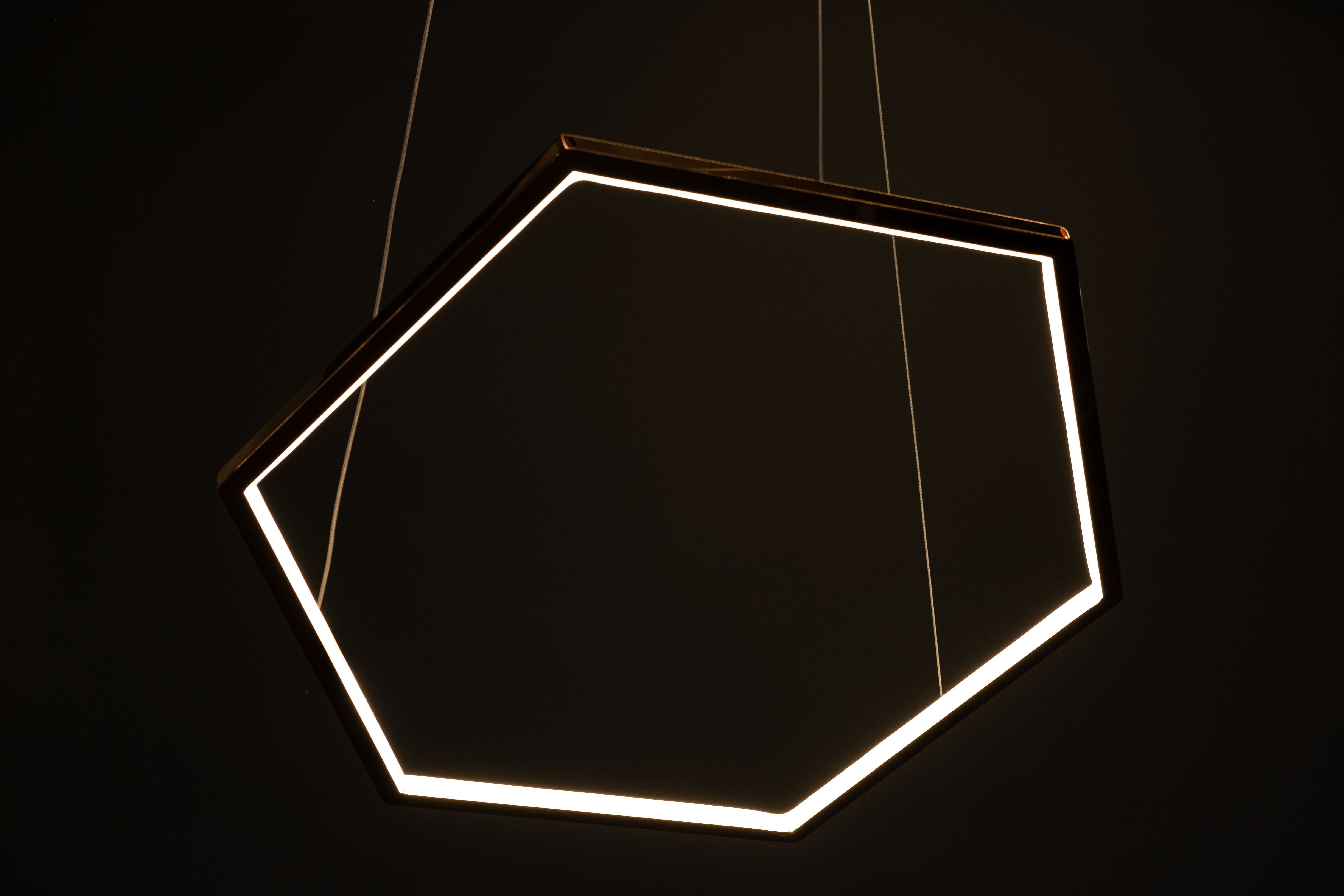 Светодиодная люстра в цвете розовое золото подойдет в гостиную, спальню или на кухню. Глянцевые шестиугольники станут ярким акцентом вашего пространства. Эта люстра — трансформер. Можно соединить три модели разных диаметров в одну конструкцию. Либо разместить их поодиночке. Светодиодная лента дарит мягкое рассеянное свечение приятное глазу. С ней вам будет комфортно находиться в пространстве и наслаждаться отдыхом.