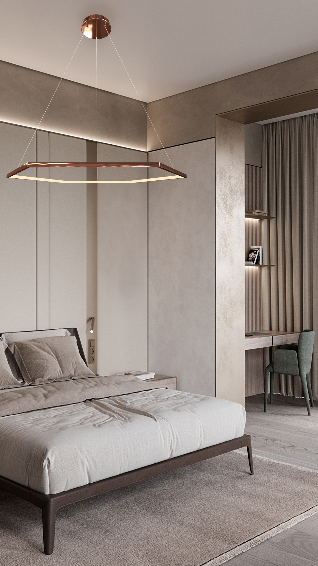 Светодиодная люстра в цвете розовое золото подойдет в гостиную, спальню или на кухню.