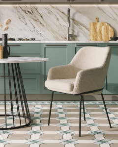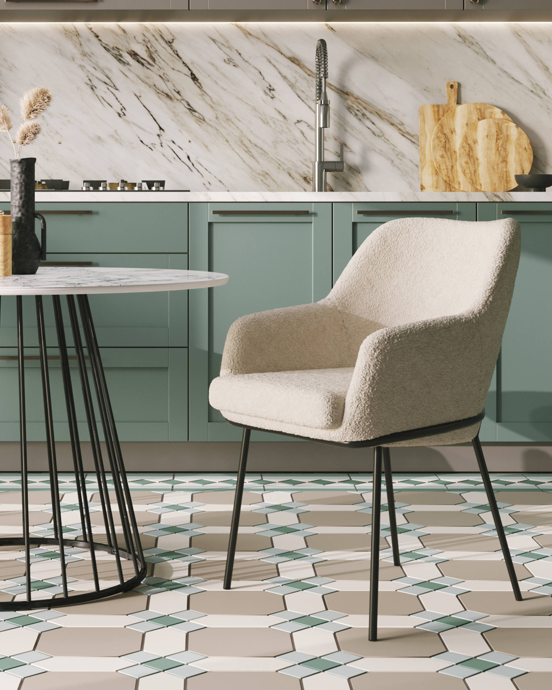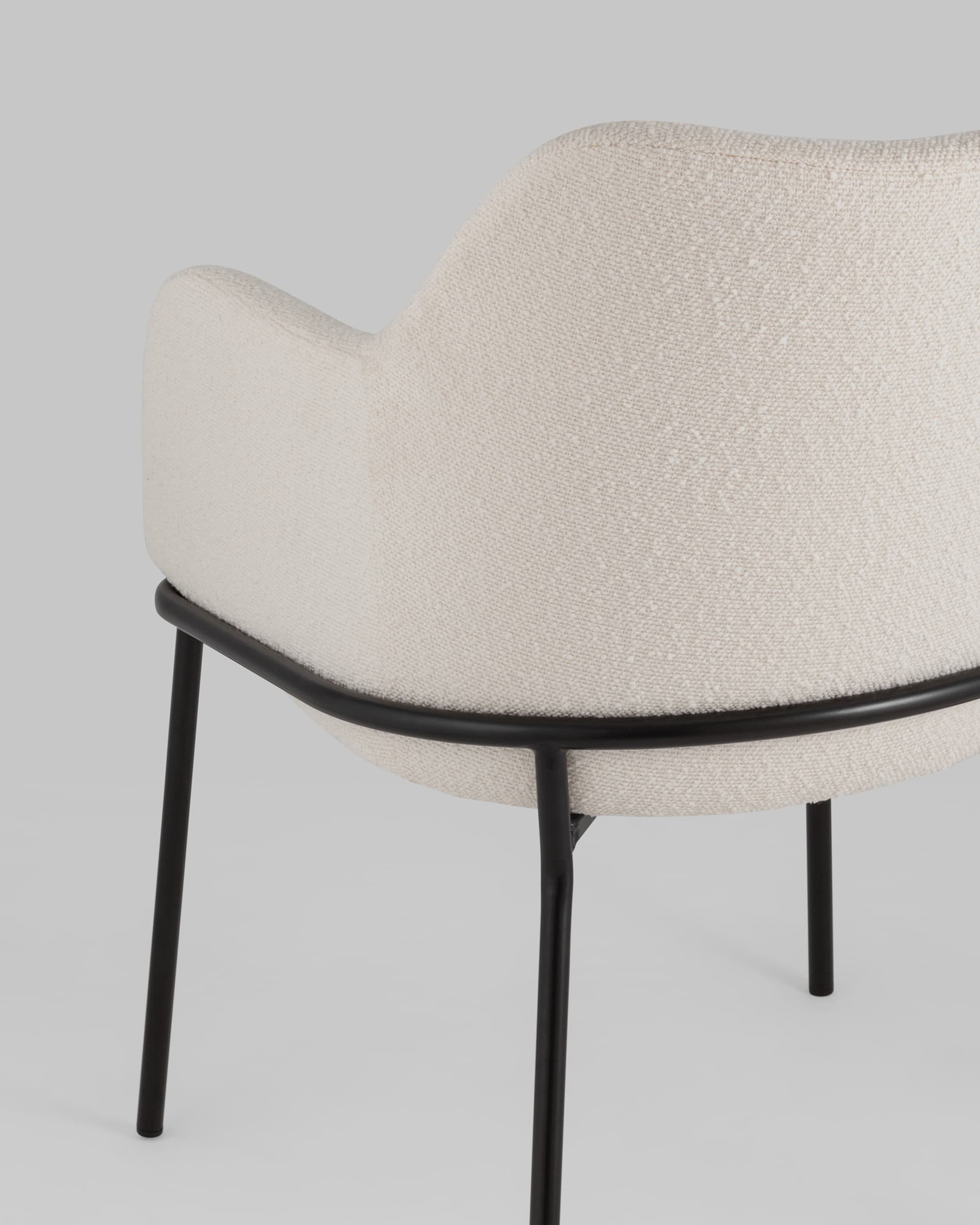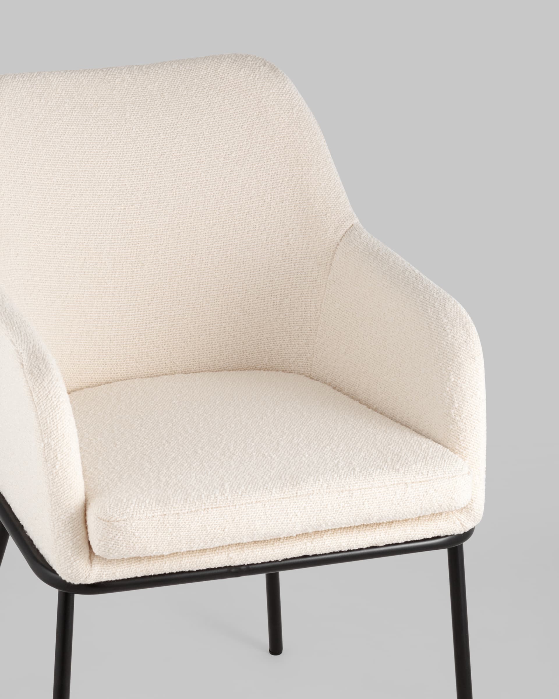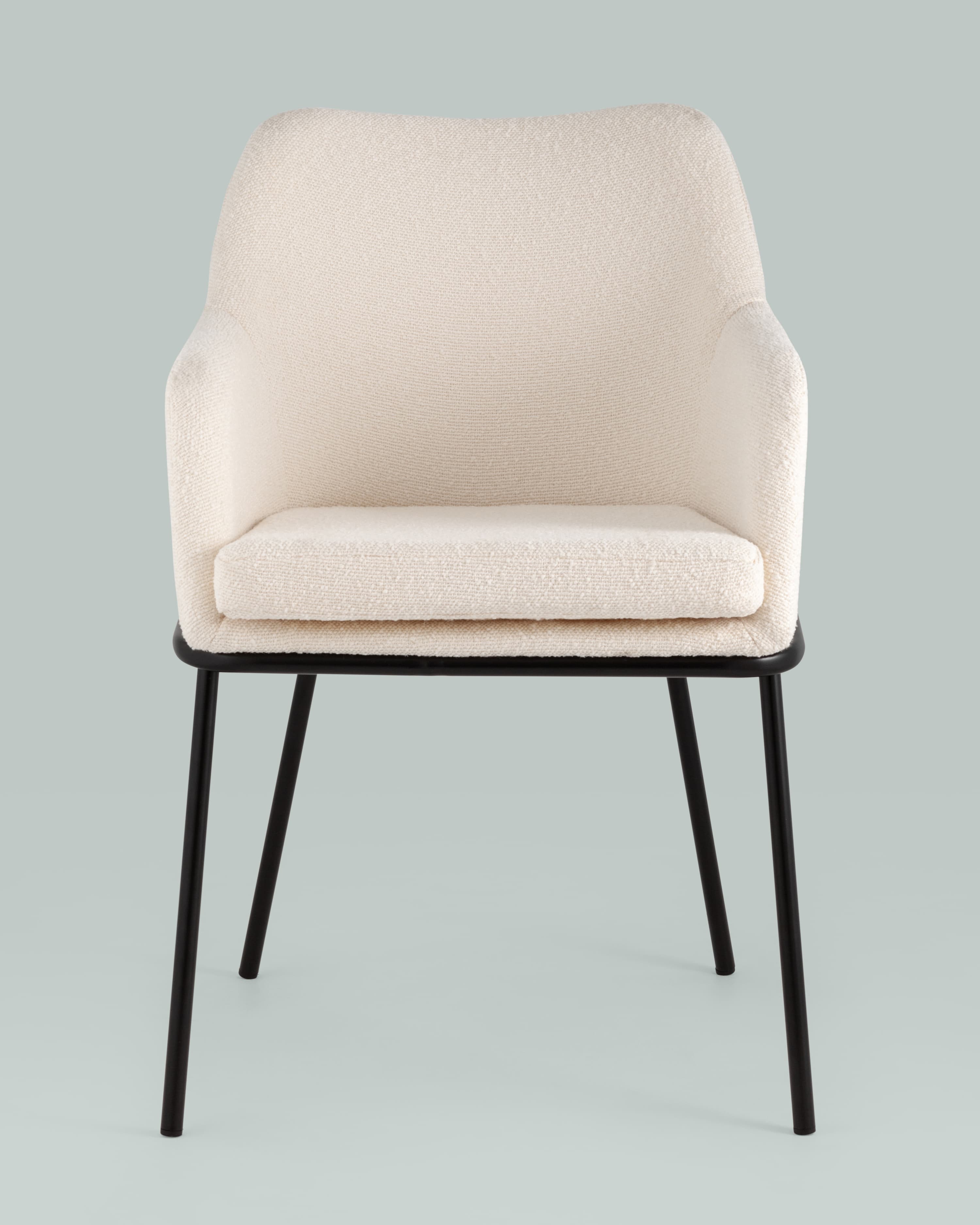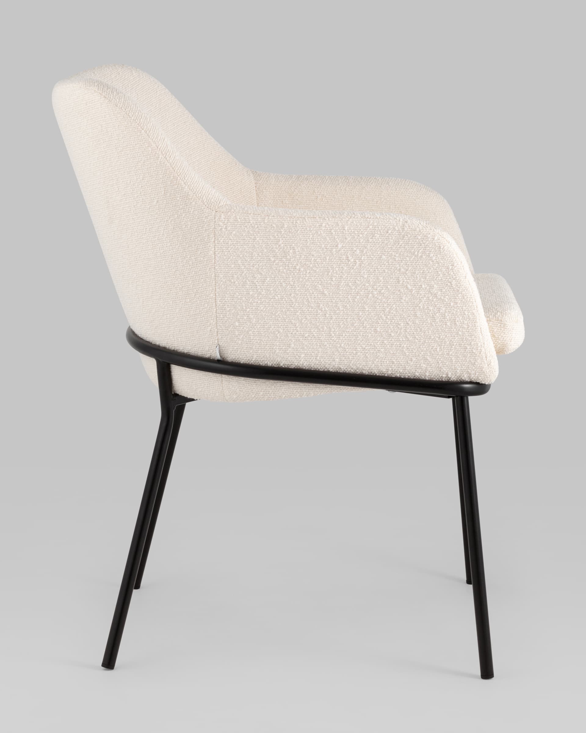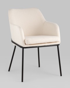 Стул с подлокотниками Кози ткань букле молочный ножки металл черные