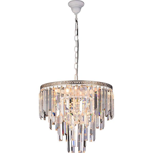 Люстра подвесная хрустальная 2110/03/06P Stilfort серии Kristalina выполнена в стиле модерн. Арматура изготовлена из окрашенного металла. Люстра украшена хрустальными подвесными декоративными элементами.