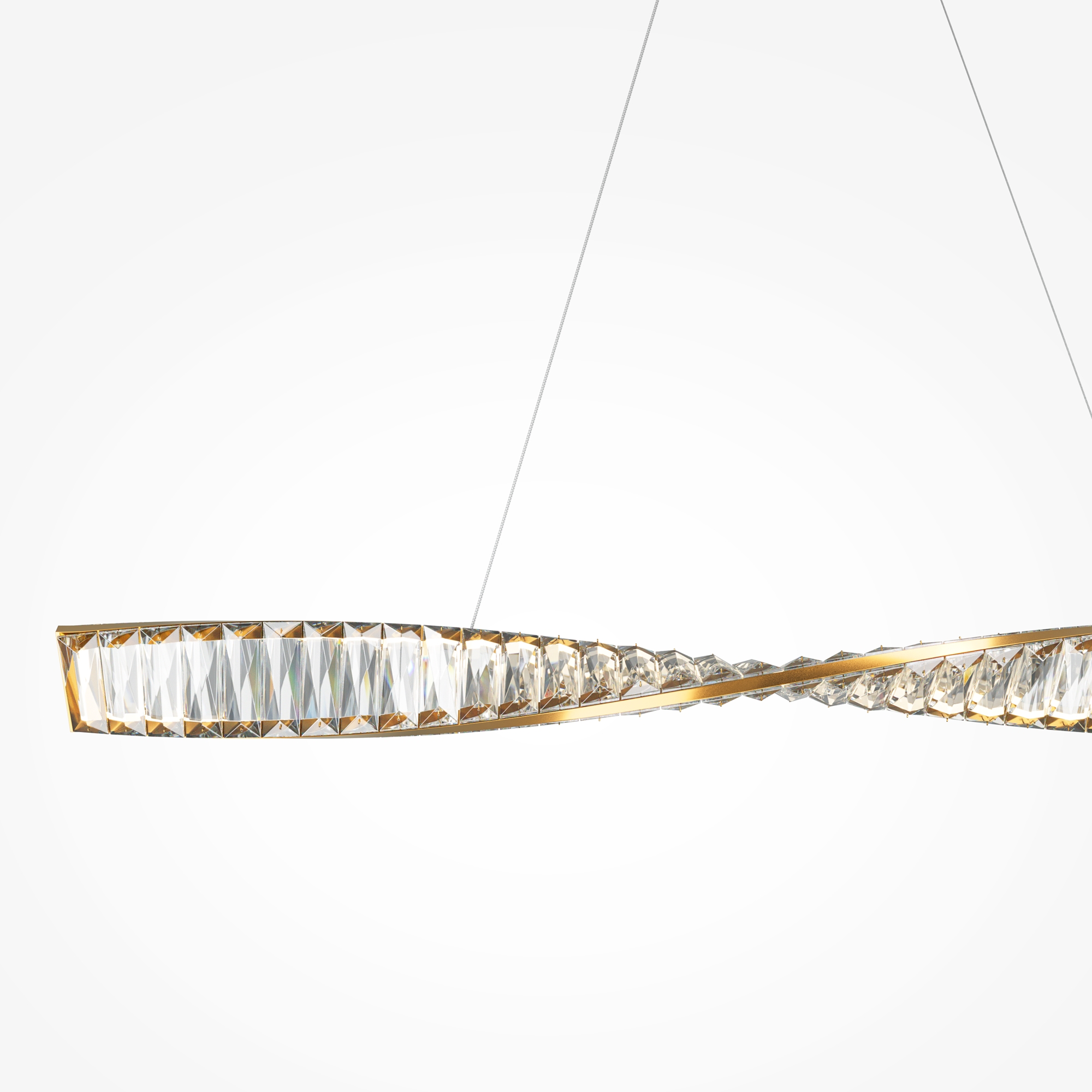 Металлическая арматура, цвет - латунь. Асимметричный хрустальный декор. LED-источник света. Цветовая температура - 3000К. Высокий индекс цветопередачи 90Ra