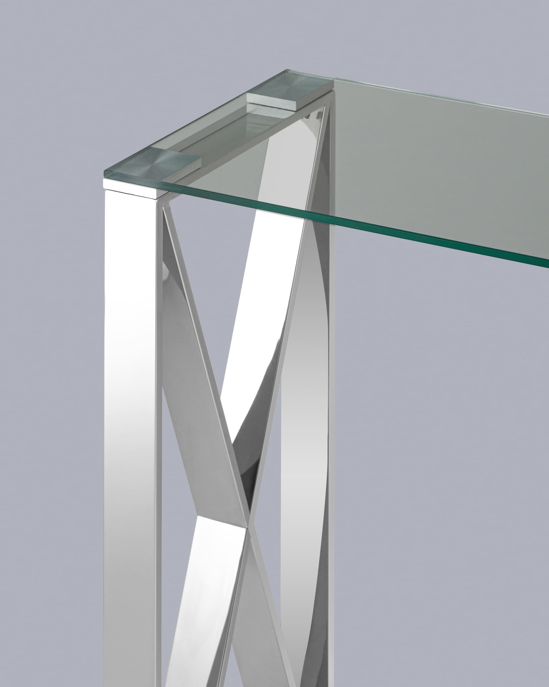 Консоль КРОСС 115*30 серебро каркас нержавеющая сталь столешница закаленное стекло