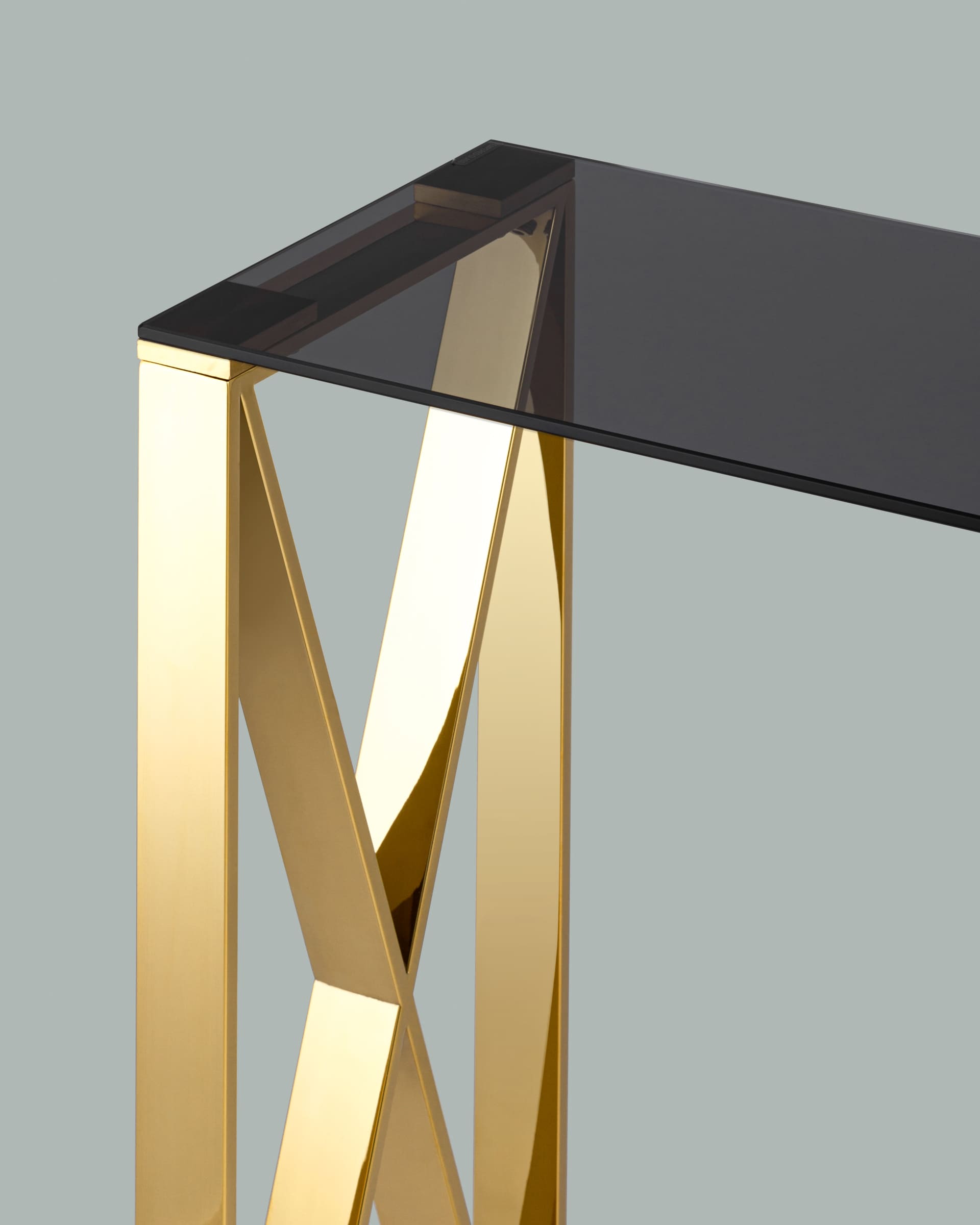 Консоль КРОСС 115*30 золото стекло smoke закаленное каркас нержавеющая сталь