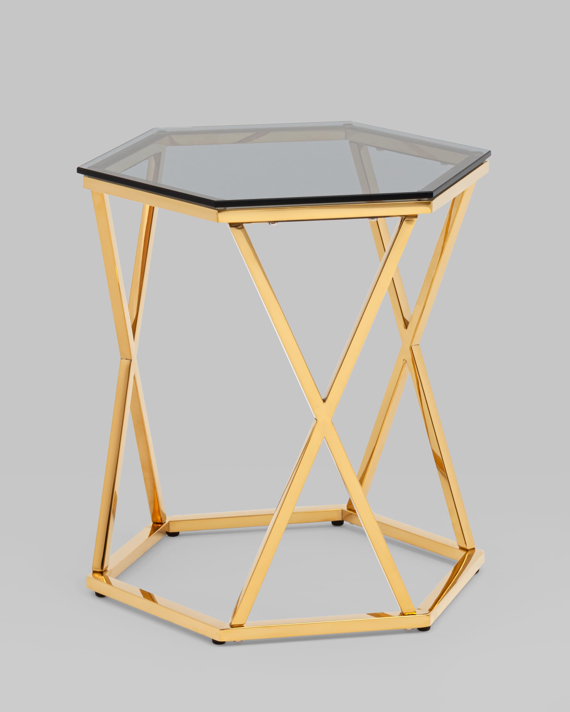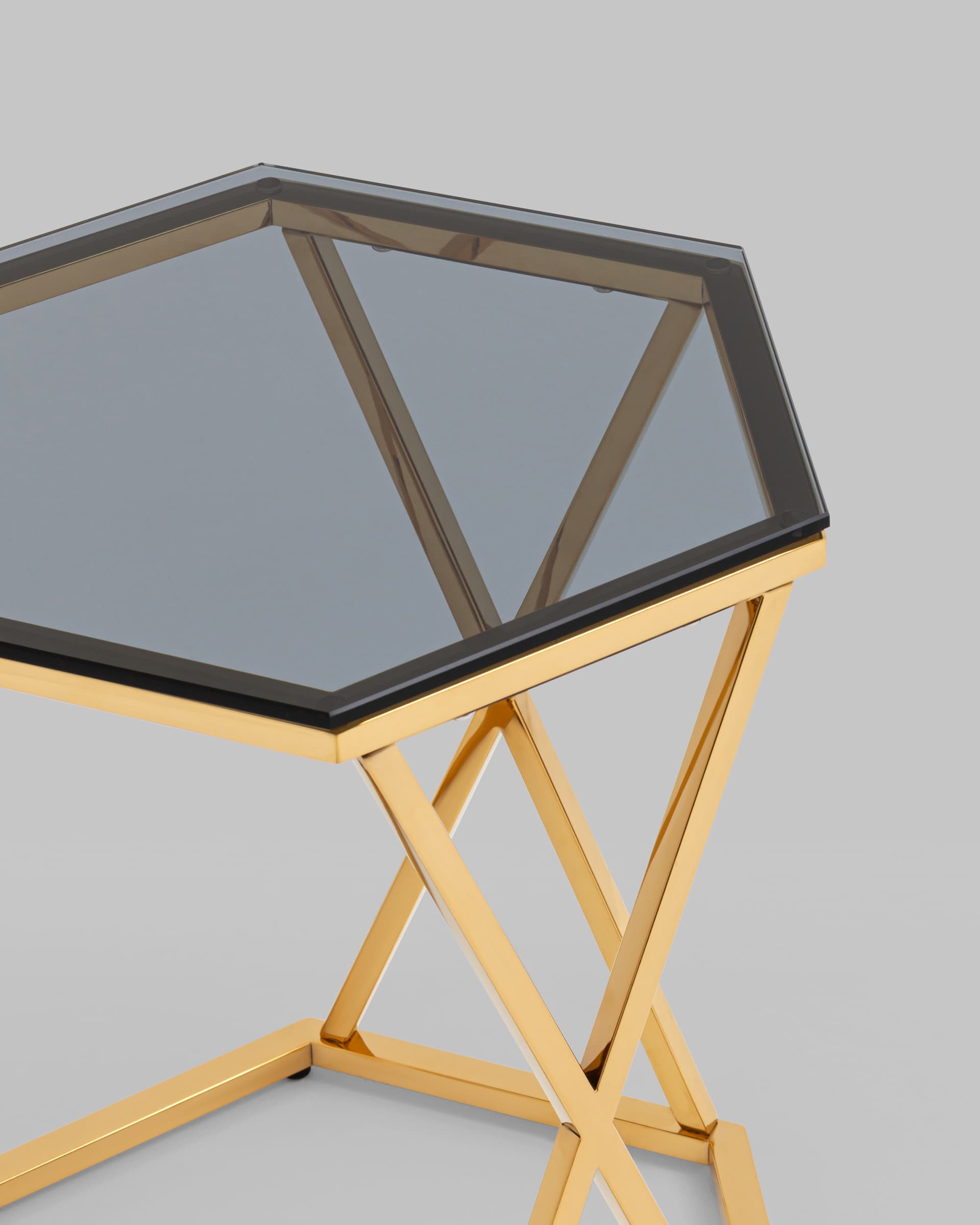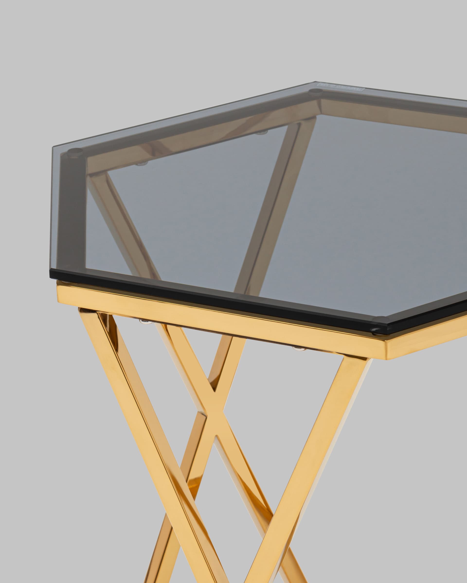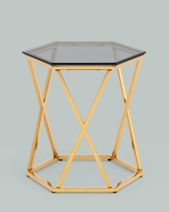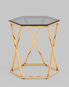Журнальный столик Круз 48*42 стекло smoke каркас закаленная сталь золото