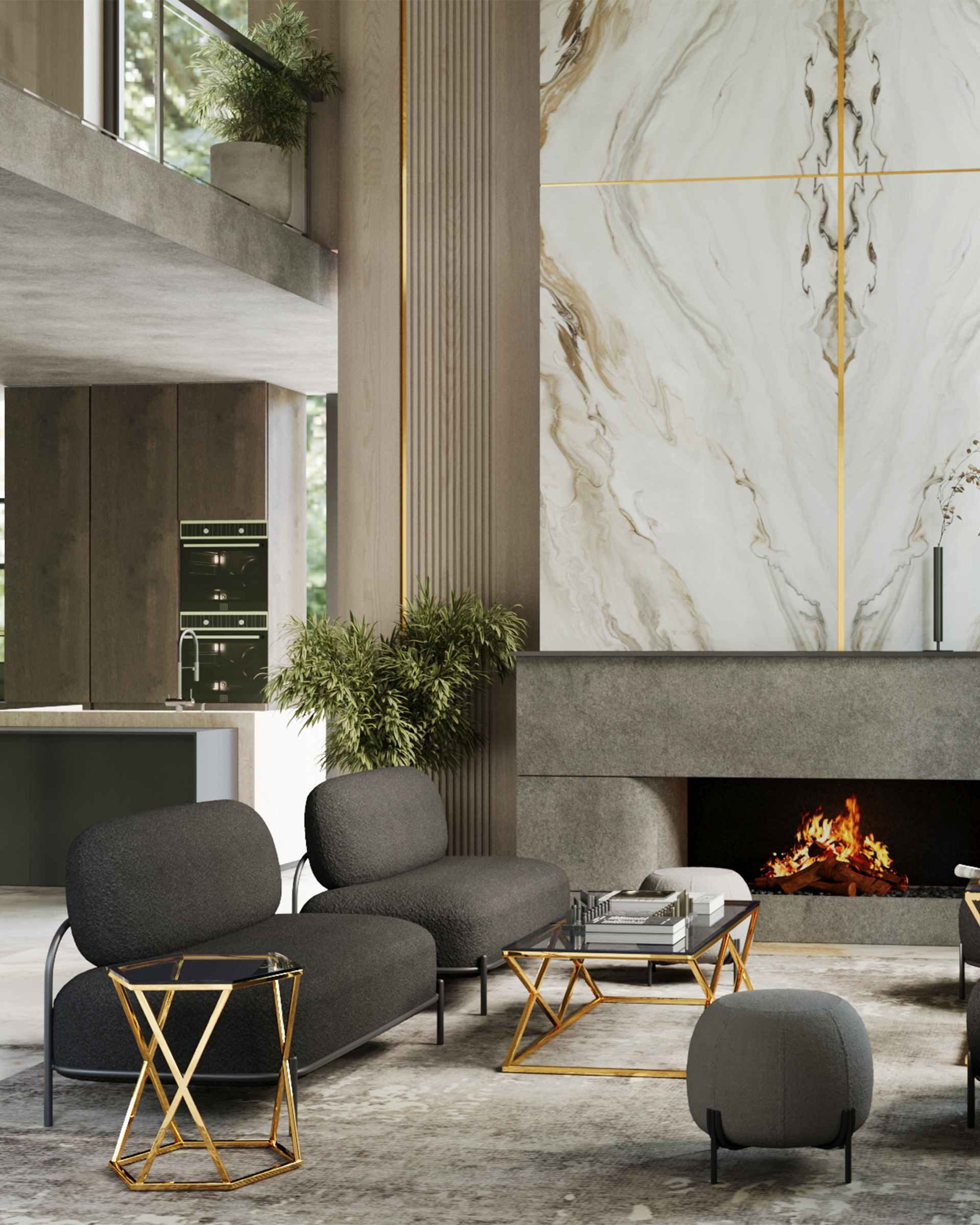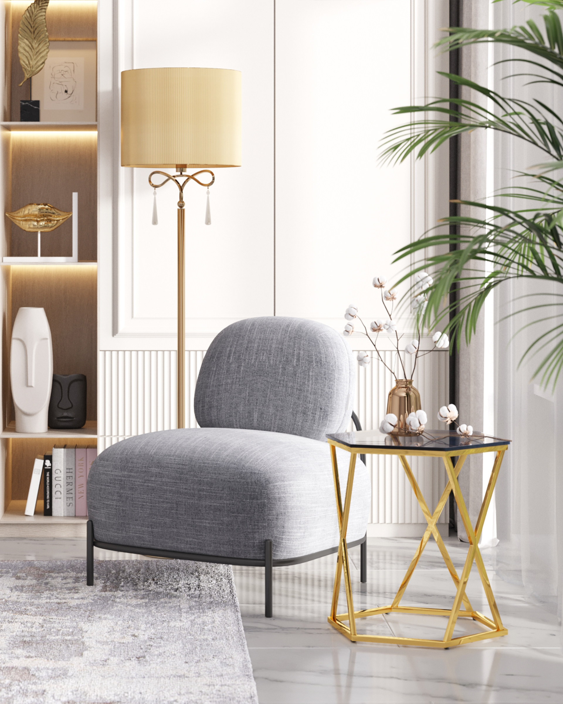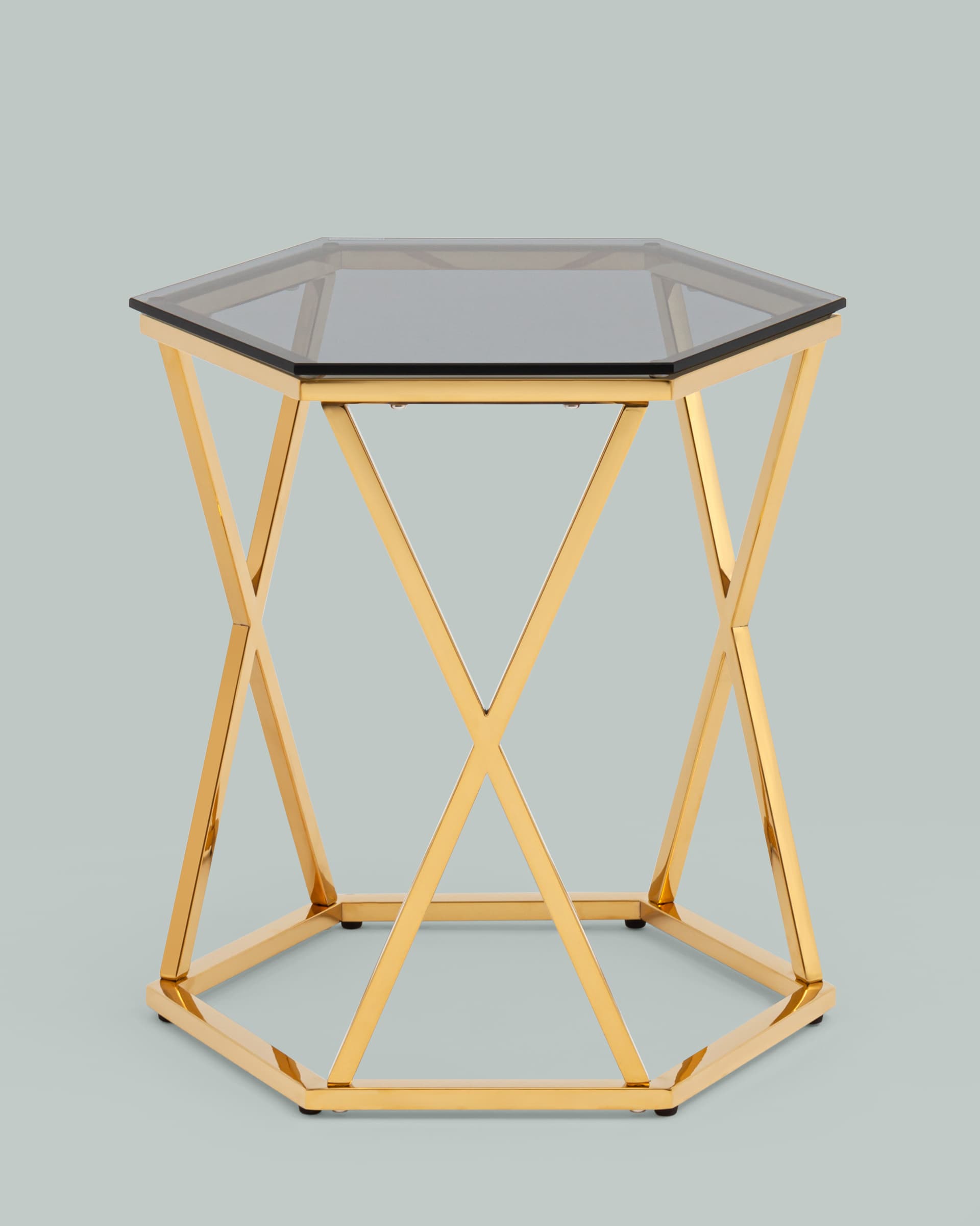 Журнальный столик Круз 48*42 стекло smoke каркас закаленная сталь золото