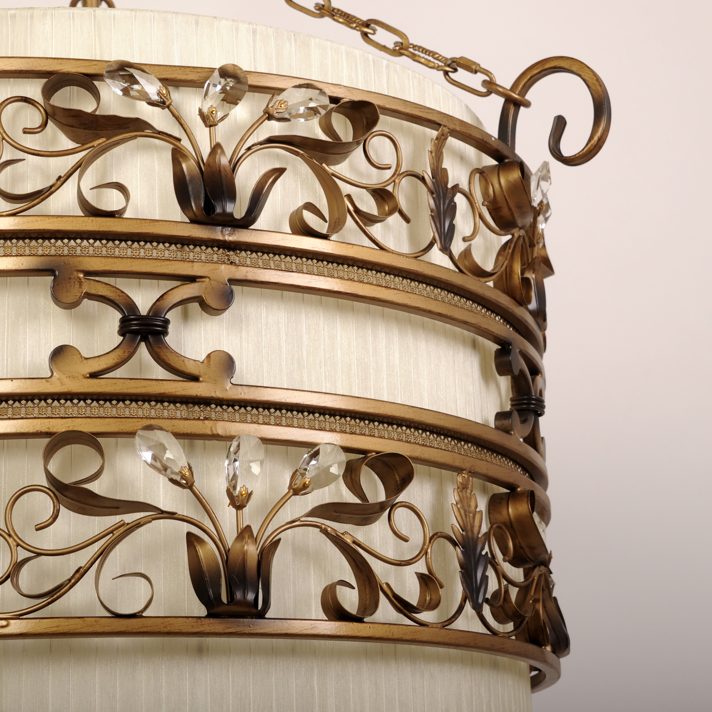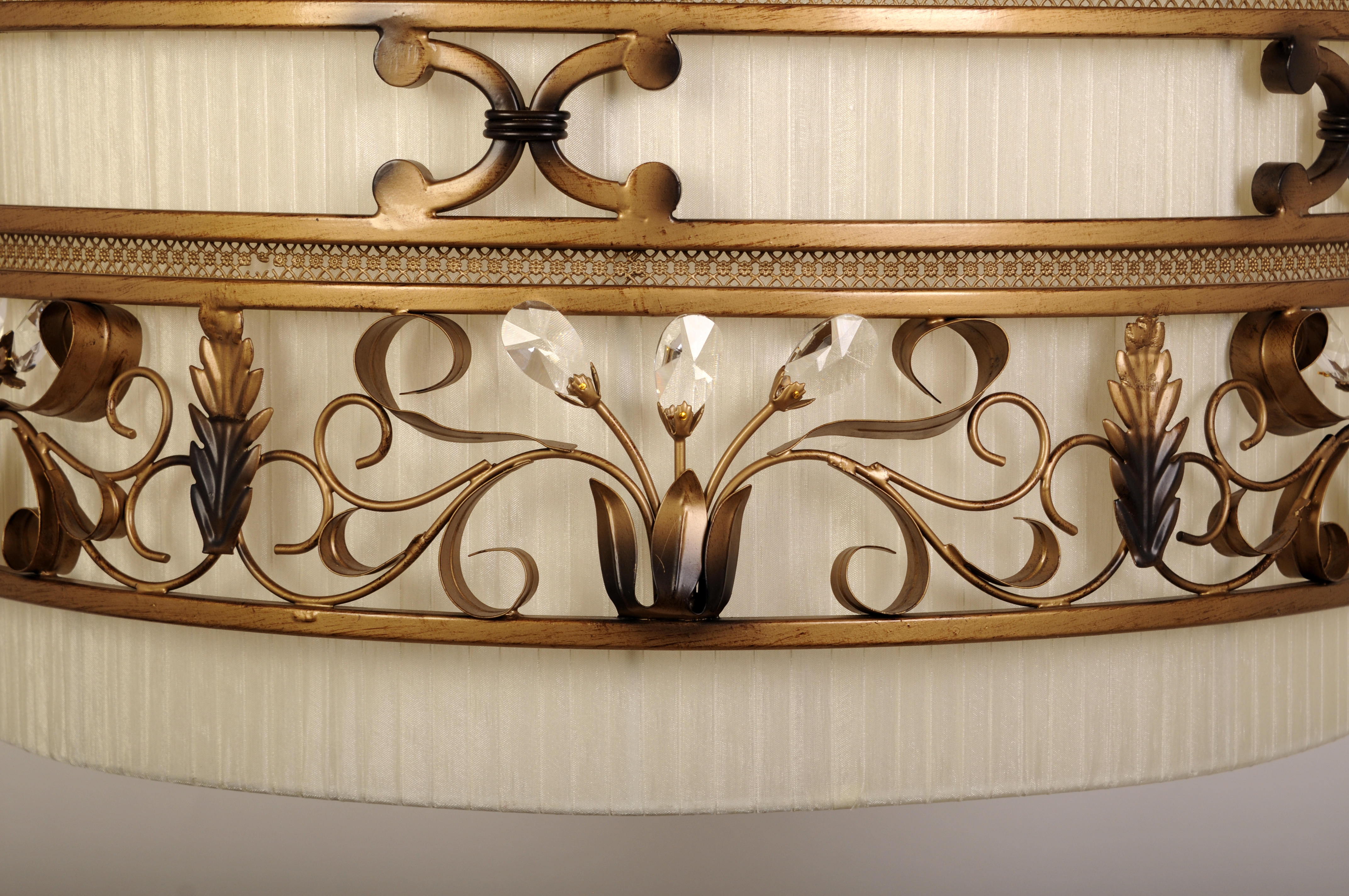 Допускается отличие страны-изготовителя, указанной в характеристиках. Линии производства могут находиться в нескольких государствах. Это не влияет на качество изготовления товара: все заводы данного бренда работают по общим стандартам, а готовые изделия проходят соответствующий контроль.Германия Коллекция L.7600 ЦветЦвет арматуры Бронза Цвет Бронза Материал арматуры Металл Цвет плафона кремовый Материал плафона Текстиль РазмерыВысота (мм) 750 Диаметр (мм) 720 Ширина (мм) 720 Диаметр абажура-плафона 720 ЭлектрикаКоличество ламп (шт) 6 Цоколь E14 Тип лампы Светодиодная, Накаливания Мощность лампы (Вт) 40 Напряжение (В) 220 Площадь освещения 15 Дополнительная информацияСпособ крепления Крюк Степень защиты (IP) IP20 Место установки на потолок Вес (Кг) 15,1 Тип подвеса На цепи -